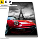LED Wechsel-Leinwand Canvalight® TEX | Eiffelturm & Rotes Auto | Querformat