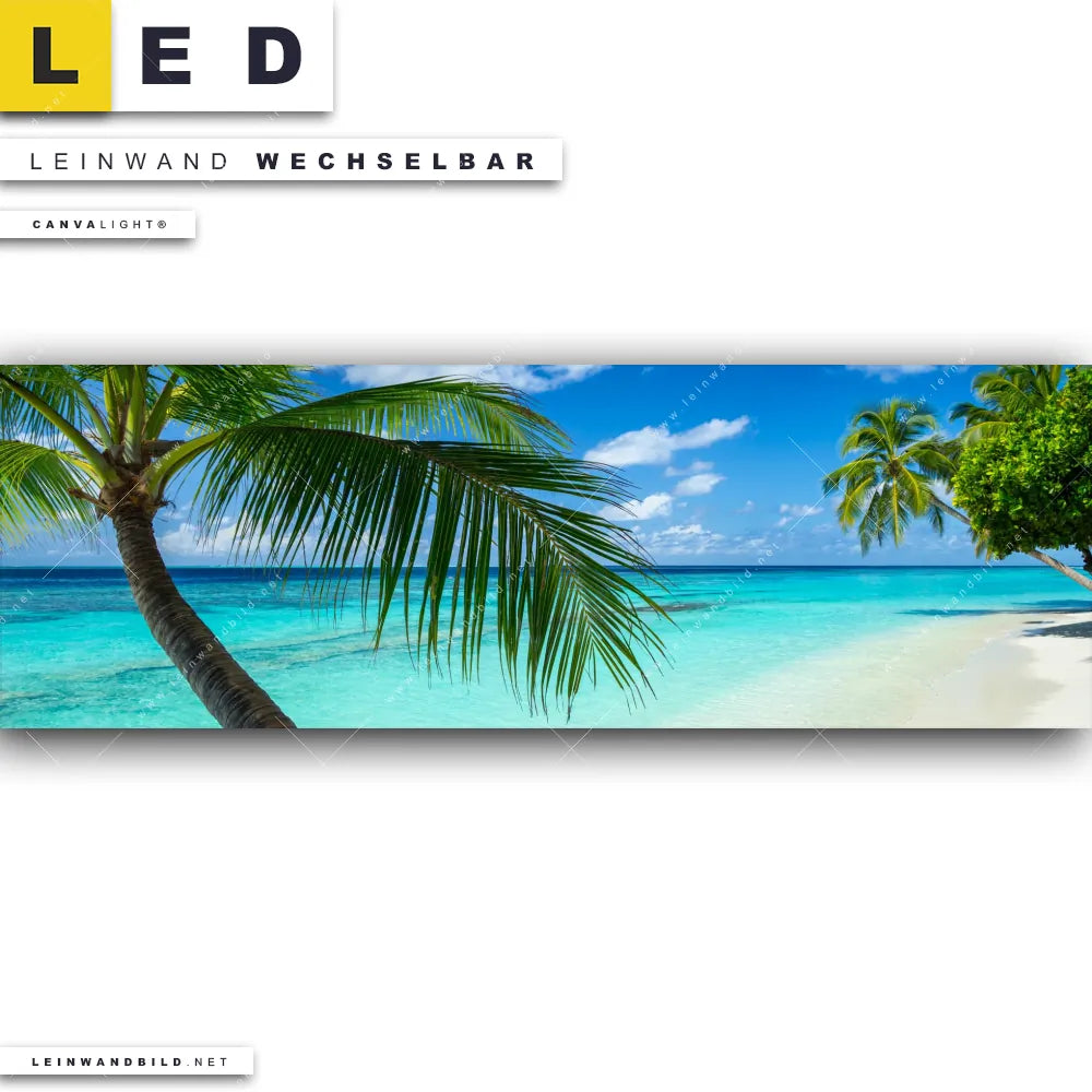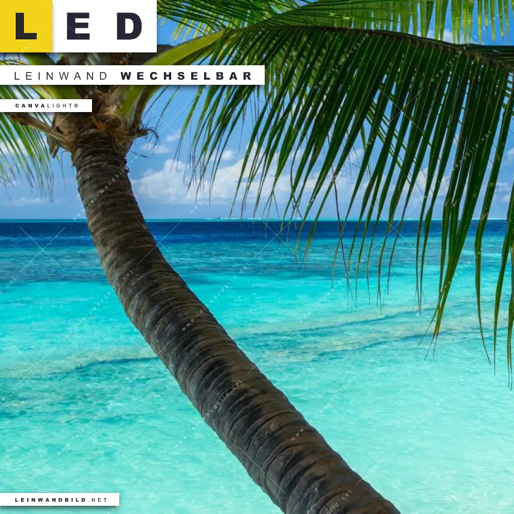 LED Leinwandbild Canvalight® TEX | Kokospalme am Strand | Panorama