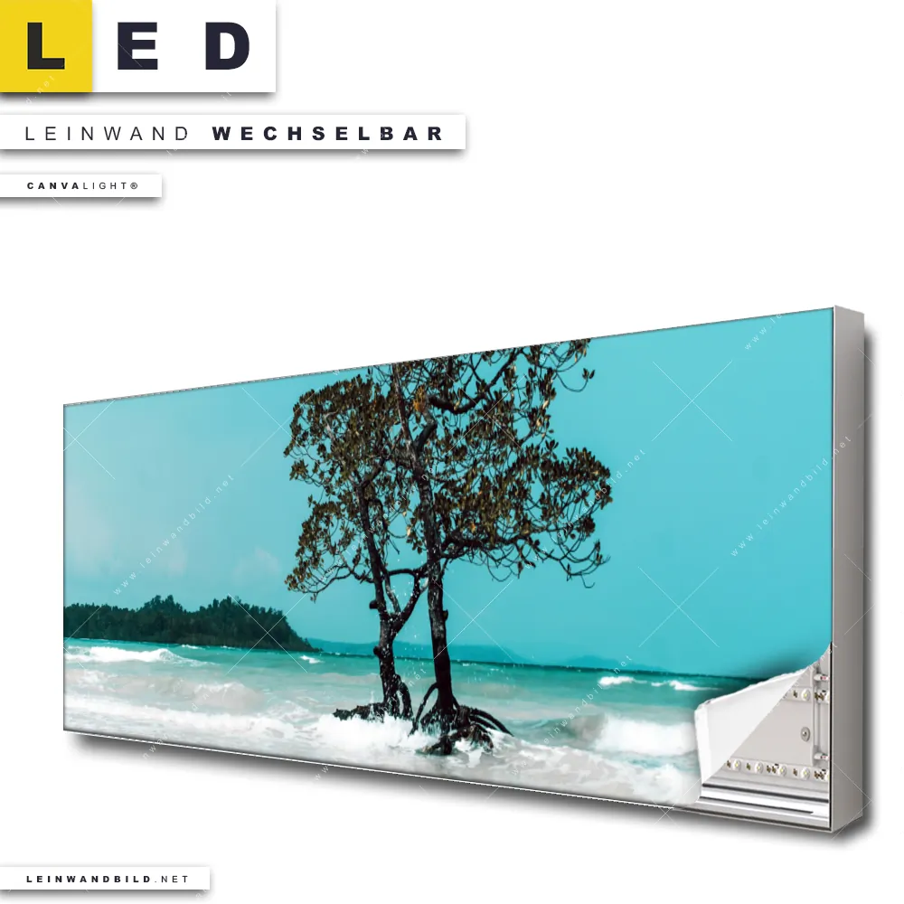 Du bist auf der Suche nach einem Strand - Meer, Landschaften LED Leinwandbild im Panorama-Format? Begriffe wie Küste, Landschaft, Sommer, Südsee - Karibik, Urlaub - Reisen haben Dich auf der Suche nach Deinem neuen XXL LED Wandbild mit wechselbarer Leinwand inspiriert? Farben wie Türkis, Blau, Beige dürfen auf Deinem neuen extra breiten Leinwand-LED-Bild nicht fehlen und Leuchtbilder im Natürlich - Realistisch Stil passen perfekt zu Deinem Einrichtungsstil?