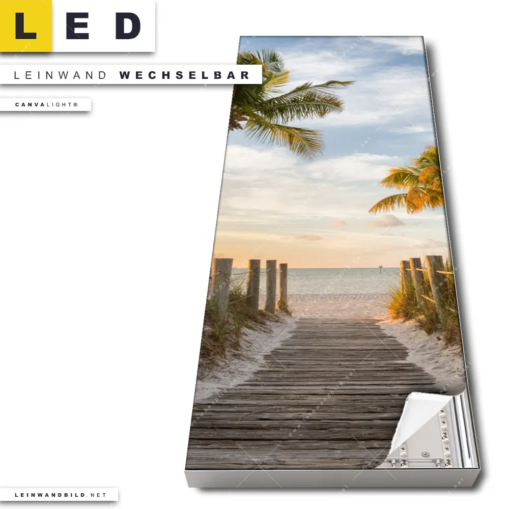 LED Leinwandbild Canvalight® TEX | Palmen am Strandweg | Schmal