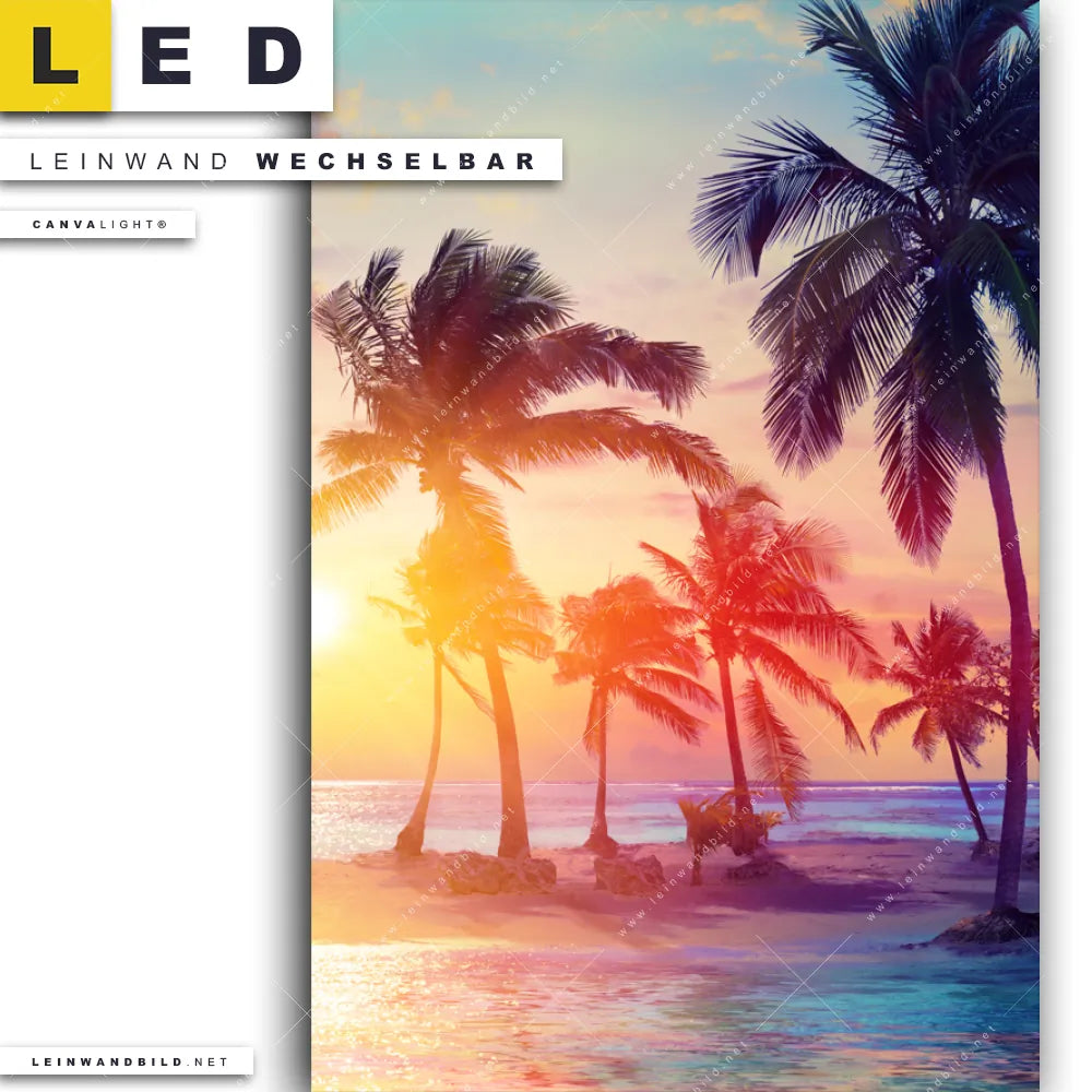 LED Leinwandbild Canvalight® TEX | Palmen bei Sonnenuntergang | Hochformat