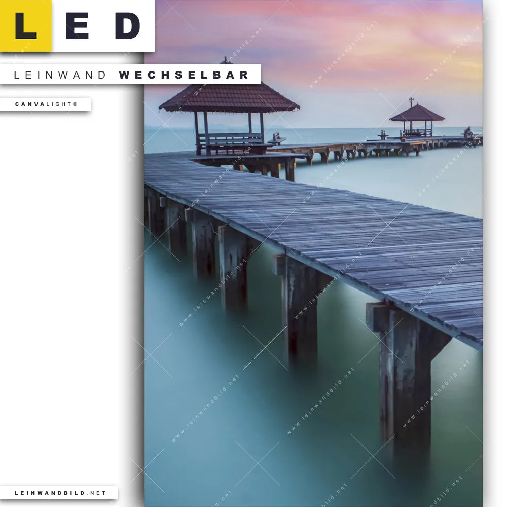 LED Leinwandbild Canvalight® TEX | Steg ins Meer | Hochformat