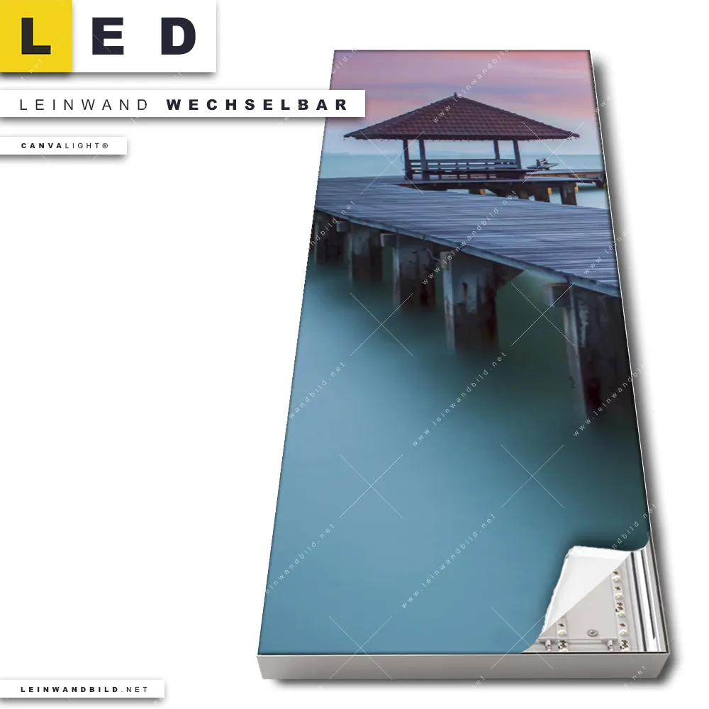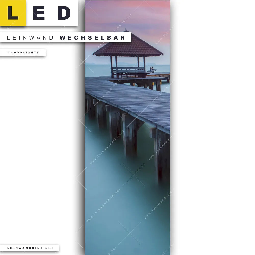LED Leinwandbild Canvalight® TEX | Steg ins Meer | Schmal