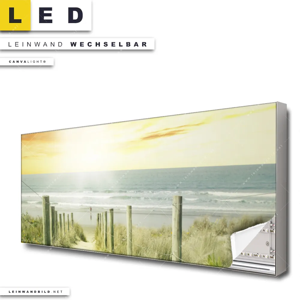 Du konfigurierst Dein individuelles LED Leinwandbild Canvalight® TEX | Weg zum Strand | Panorama und wir produzieren es NEU für Dich. Unsere Landschaften, Strand - Meer LED Bilder mit wechselbarer Textil-Leinwand sind KEINE Lagerware. Du bist Dir unsicher, welches Motiv oder Format das richtige für dein individuelles Canvalight® Leuchtbild ist, dann helfen wir dir gerne weiter und beraten dich!