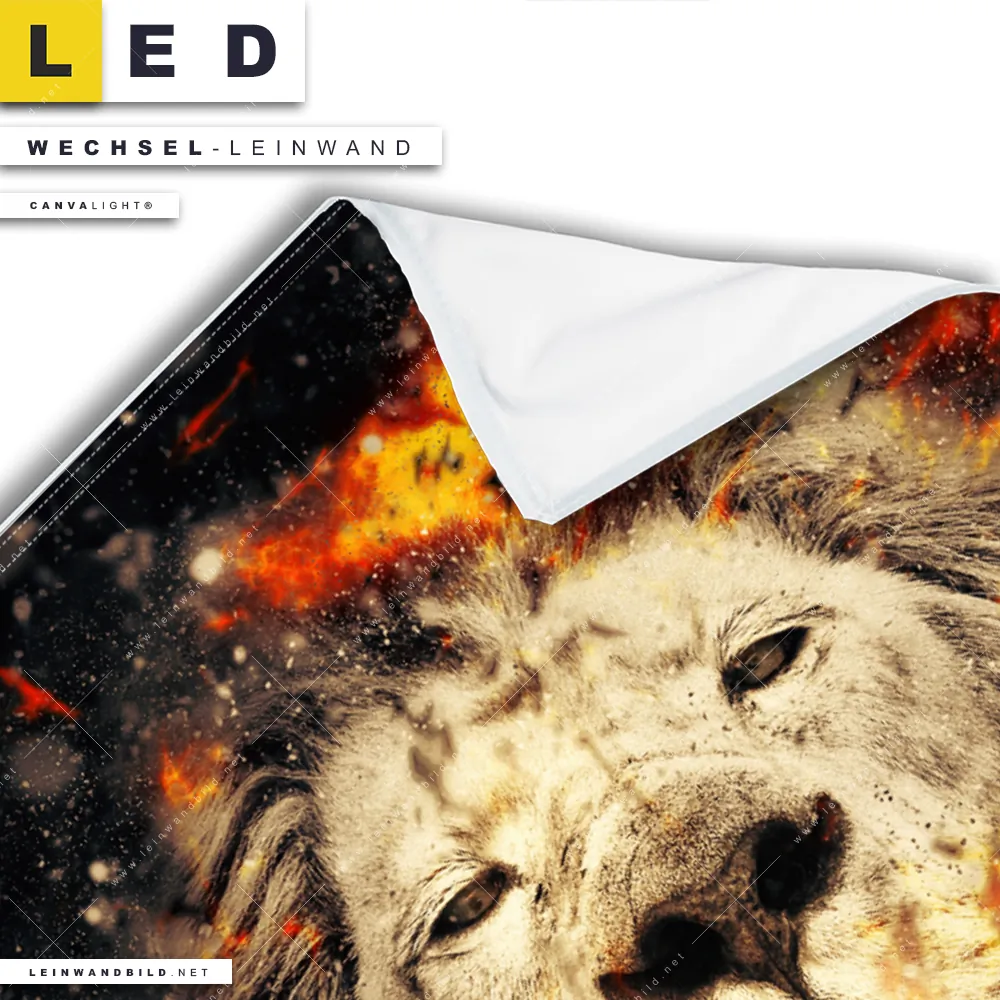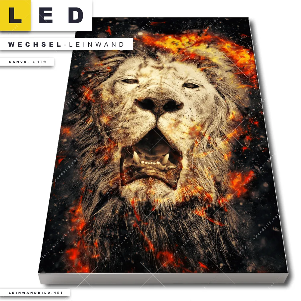 Du bist auf der Suche nach einer Tierwelt Wechsel-Leinwand für Dein LED-Leinwandbild im Hochformat? Begriffe wie Raubkatze, Löwe, Afrika, Dschungel, wild, Safari, Lion, Feuer, Flammen, Porträt haben Dich auf der Suche nach Deiner Ersatz-Leinwand für dein LED Wandbild mit wechselbarer Leinwand inspiriert? Farben wie Schwarz, Beige, Rot, Orange dürfen auf Deinem neuen Wechselmotiv für Dein XXL Leinwand-LED-Bild nicht fehlen und Leinwände im Mixed Media, Modern Art Stil für Leuchtbilder passen perfekt zu Deinem Einrichtungsstil?