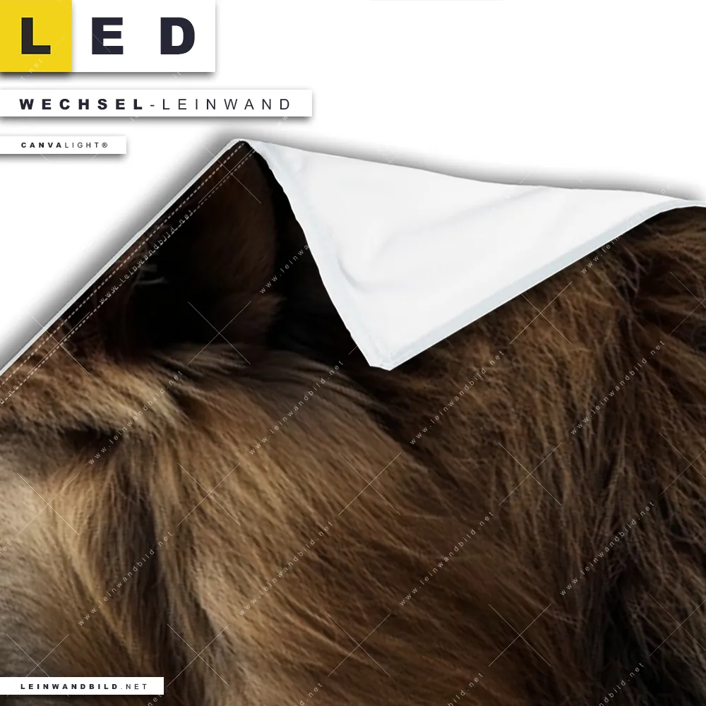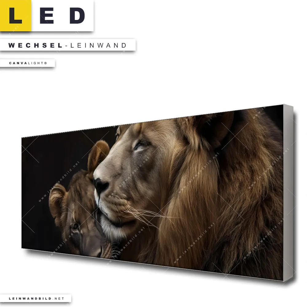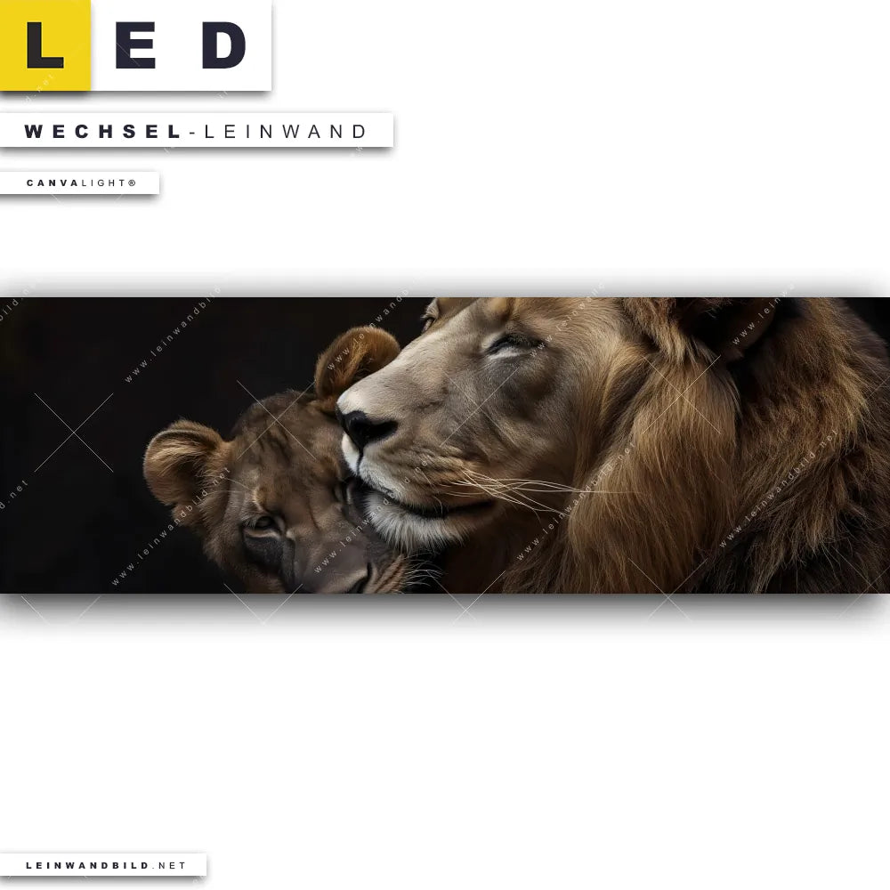 LED Wechsel-Leinwand Canvalight® TEX | Löwen - Stärke und Zärtlichkeit | Panorama