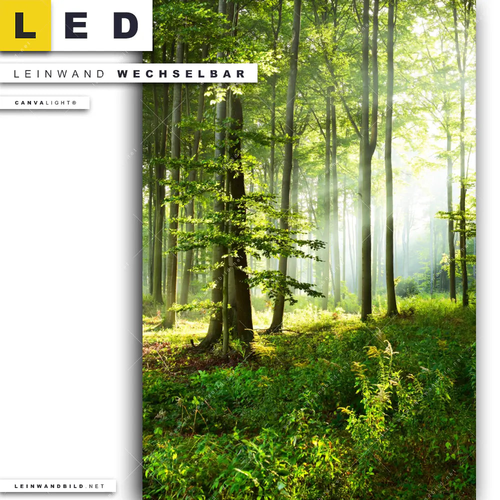 LED Leinwandbild Canvalight® TEX | Sonniger Morgen im Wald | Hochformat