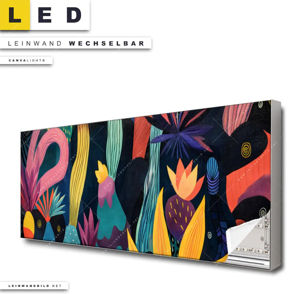Du bist auf der Suche nach einem Blumen - Botanik, Muster - Texturen LED Leinwandbild im Panorama-Format? Begriffe wie Natur, Pflanzen, Kakteen, Blätter, Flora haben Dich auf der Suche nach Deinem neuen XXL LED Wandbild mit wechselbarer Leinwand inspiriert? Farben wie Schwarz, Gelb , Rot, Türkis, Rosa, Pink dürfen auf Deinem neuen extra breiten Leinwand-LED-Bild nicht fehlen und Leuchtbilder im Abstrakt, Floral, Modern Art Stil passen perfekt zu Deinem Einrichtungsstil?