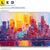 Begriffe wie Skyline, Metropole, Wolkenkratzer, Hochhäuser, Stadt, City, Kunst, Malerei, Sonnenuntergang - Sonnenaufgang haben Dich auf der Suche nach Deinem neuen LED Wandbild mit beleuchteter Leinwand inspiriert? Dann sollte das LED Bild Buntes Stadtbild mit austauschbarer Textil-Fotoleinwand den Weg zu Dir finden.