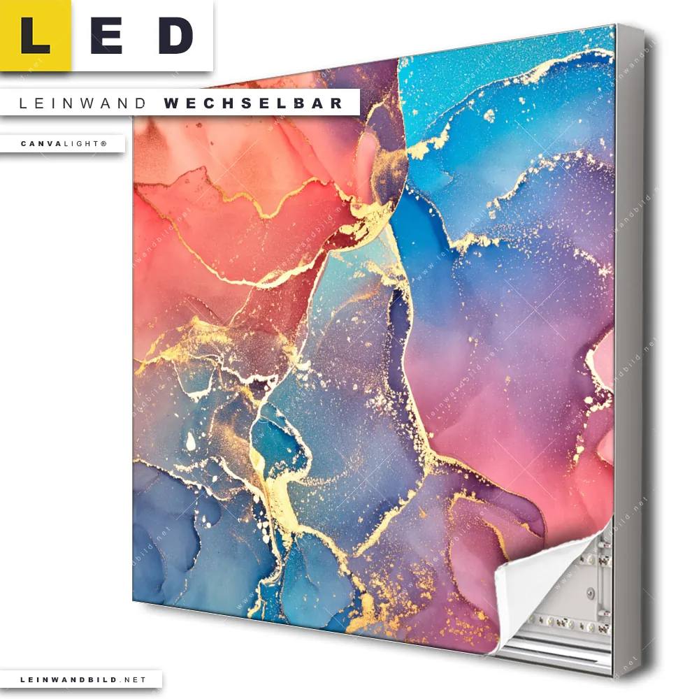 Du bist auf der Suche nach einem Muster - Texturen LED Leinwandbild im Quadratischen Format? Begriffe wie Marmor, Flüssigkeit, Acryl, flüssig, Farbe, Marmorierung, Fluid Art haben Dich auf der Suche nach Deinem neuen XXL LED Wandbild mit wechselbarer Leinwand inspiriert? Farben wie Gold, Rosa, Hellblau, Blau dürfen auf Deinem neuen Leinwand-LED-Bild nicht fehlen und Leuchtbilder im Abstrakt, Modern Art Stil passen perfekt zu Deinem Einrichtungsstil?