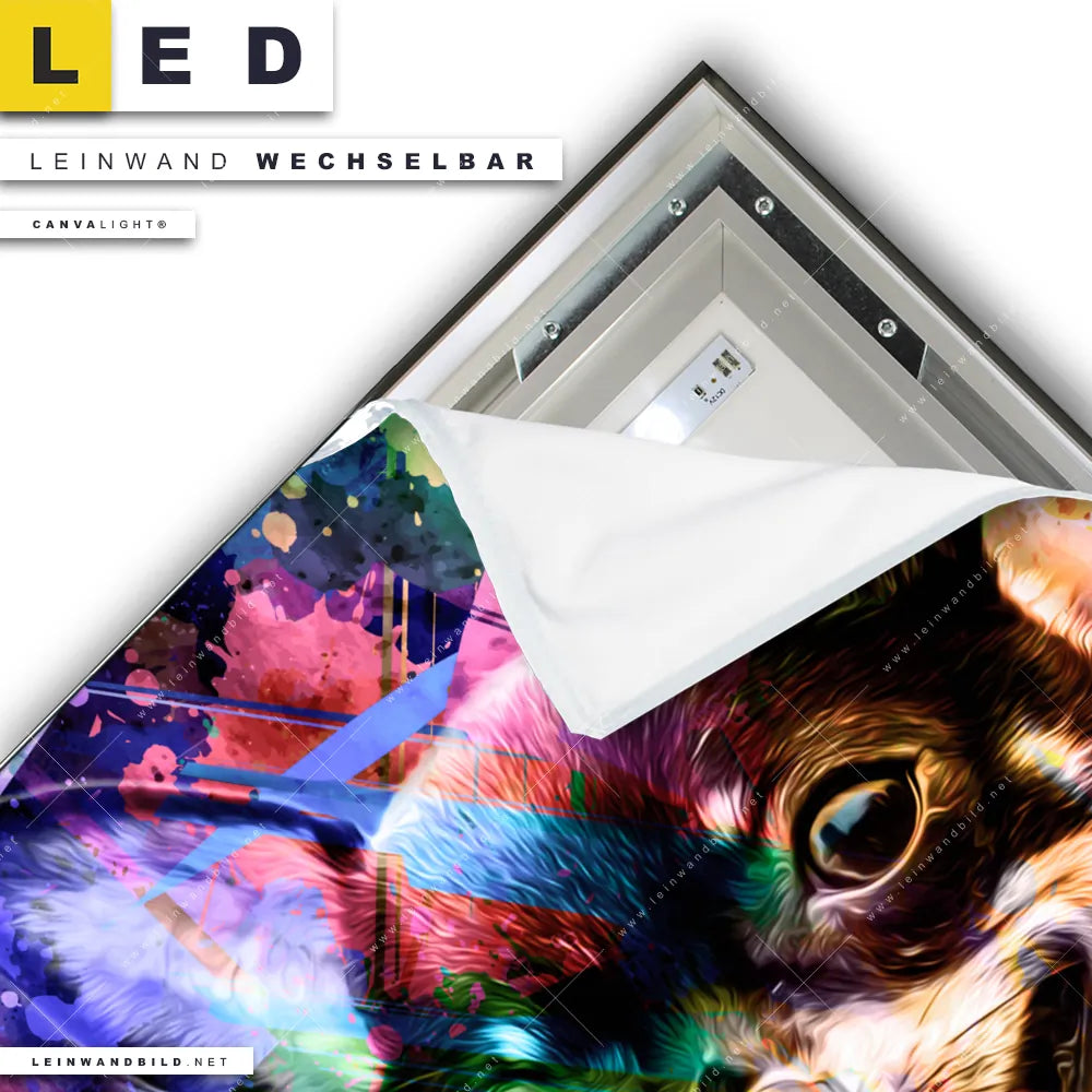 Du konfigurierst Dein individuelles LED Leinwandbild Canvalight® TEX | Abstrakter Chihuahua | Quadrat und wir produzieren es NEU für Dich. Unsere Tierwelt LED Bilder mit wechselbarer Textil-Leinwand sind KEINE Lagerware. Du bist Dir unsicher, welches Motiv oder Format das richtige für dein individuelles Canvalight® Leuchtbild ist, dann helfen wir dir gerne weiter und beraten dich!