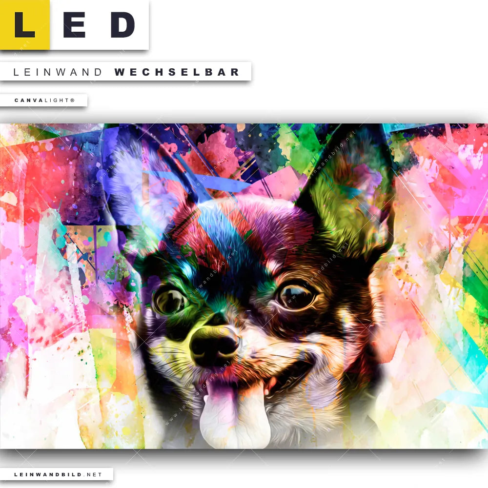 Du bist auf der Suche nach einem Tierwelt LED Leinwandbild im Querformat? Begriffe wie Chihuahua, Tier, Hund haben Dich auf der Suche nach Deinem neuen XXL LED Wandbild mit wechselbarer Leinwand inspiriert? Farben wie Bunt dürfen auf Deinem neuen breiten Leinwand-LED-Bild nicht fehlen und Leuchtbilder im Abstrakt, Grunge, Mixed Media, Modern Art, Pop Art, Street Art Stil passen perfekt zu Deinem Einrichtungsstil?