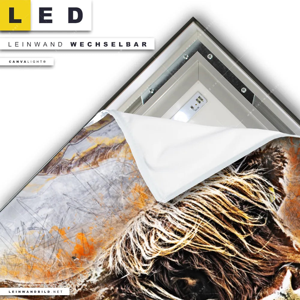 Du konfigurierst Dein individuelles LED Leinwandbild Canvalight® TEX | Abstrakter Highlander | Hochformat und wir produzieren es NEU für Dich. Unsere Tierwelt LED Bilder mit wechselbarer Textil-Leinwand sind KEINE Lagerware. Du bist Dir unsicher, welches Motiv oder Format das richtige für dein individuelles Canvalight® Leuchtbild ist, dann helfen wir dir gerne weiter und beraten dich!
