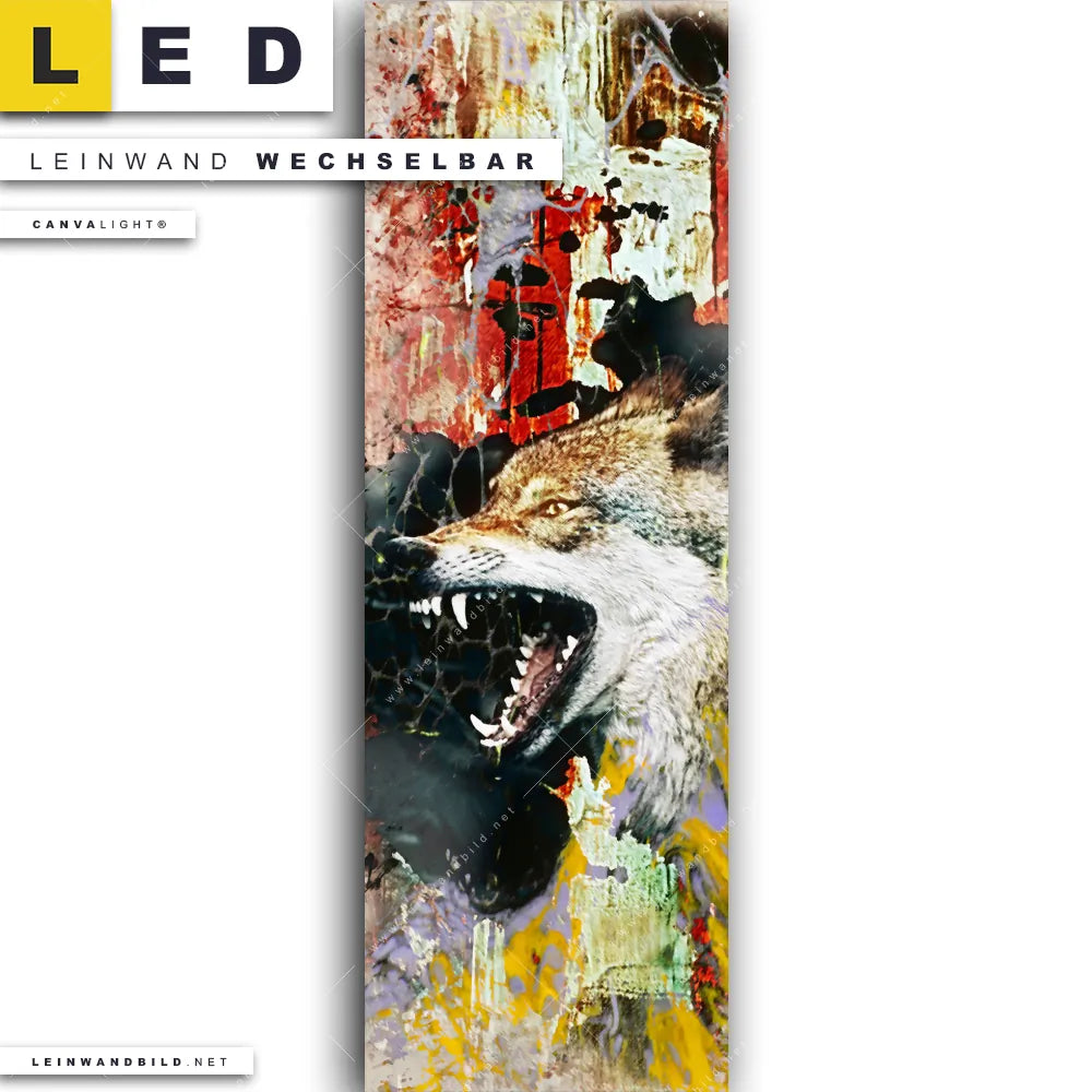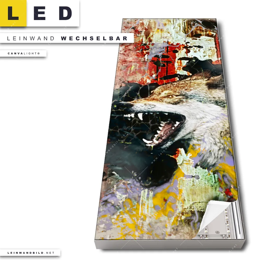 LED Leinwandbild Canvalight® TEX | Abstrakter Wolf | Schmal