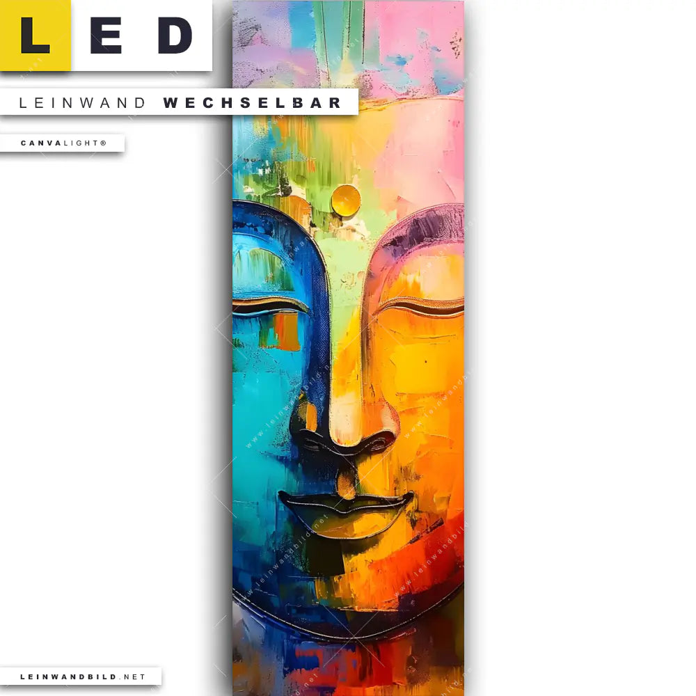 LED Leinwandbild Canvalight® TEX | Abstraktes Buddha-Gesicht | Schmal