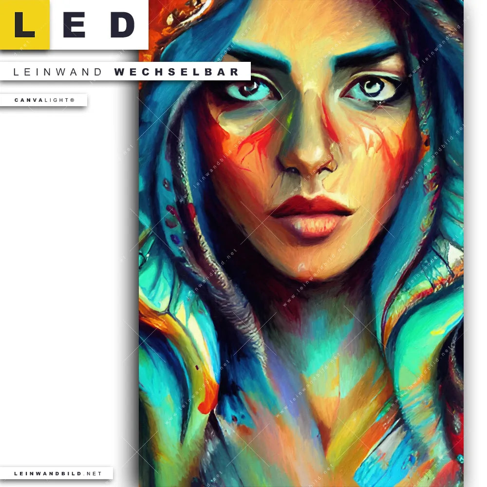 LED Leinwandbild Canvalight® TEX | Abstraktes Frauenporträt Hydra | Hochformat