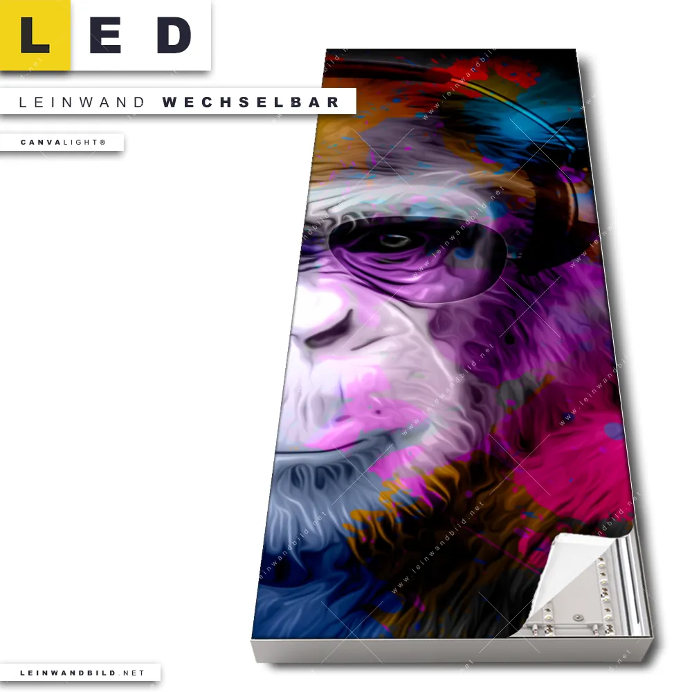 LED Leinwandbild Canvalight® TEX | Affe Pop Art No.1 | Schmal