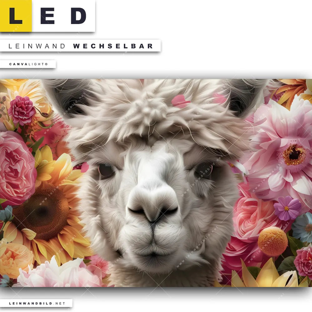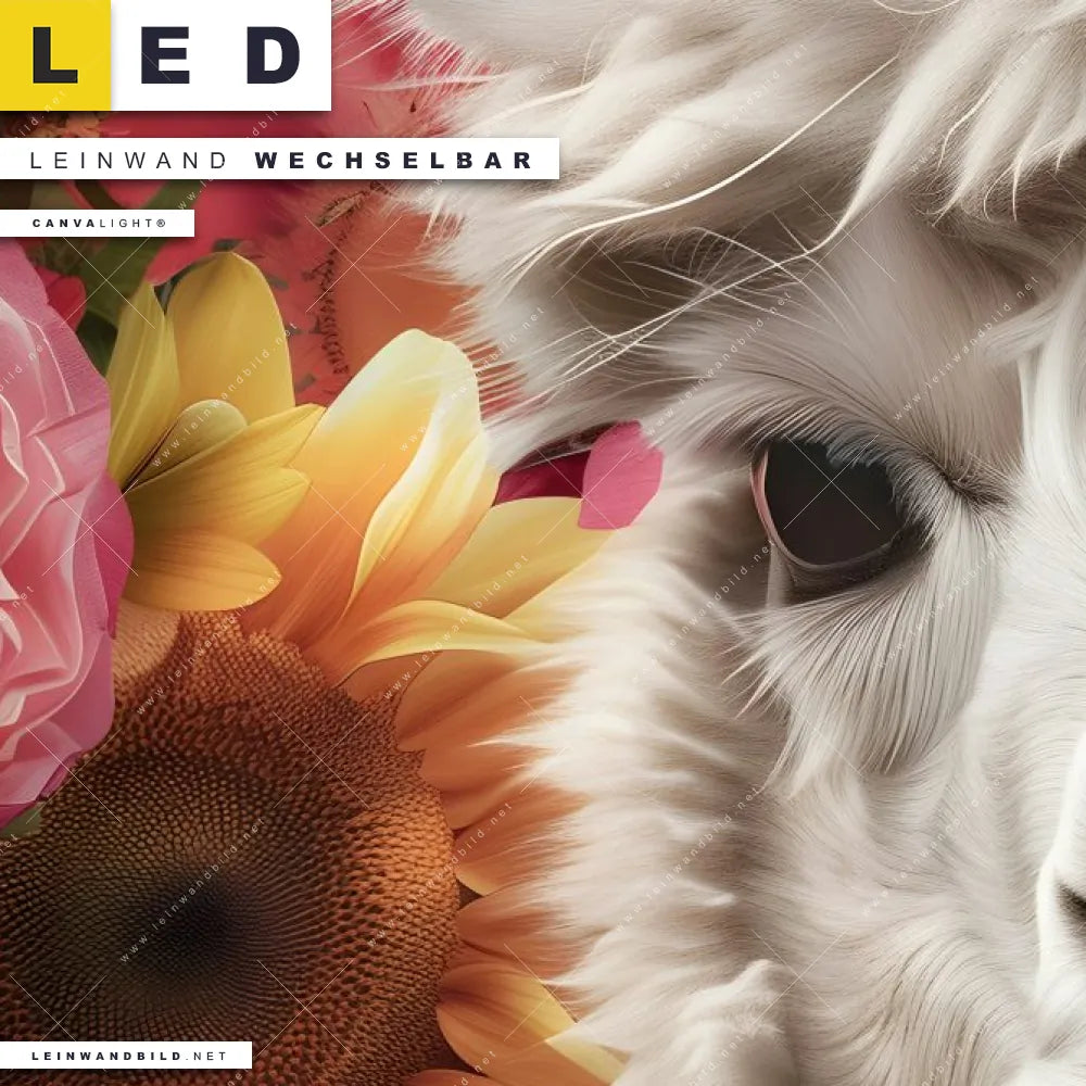 LED Leinwandbild Canvalight® TEX | Alpaka mit Blumen | Querformat