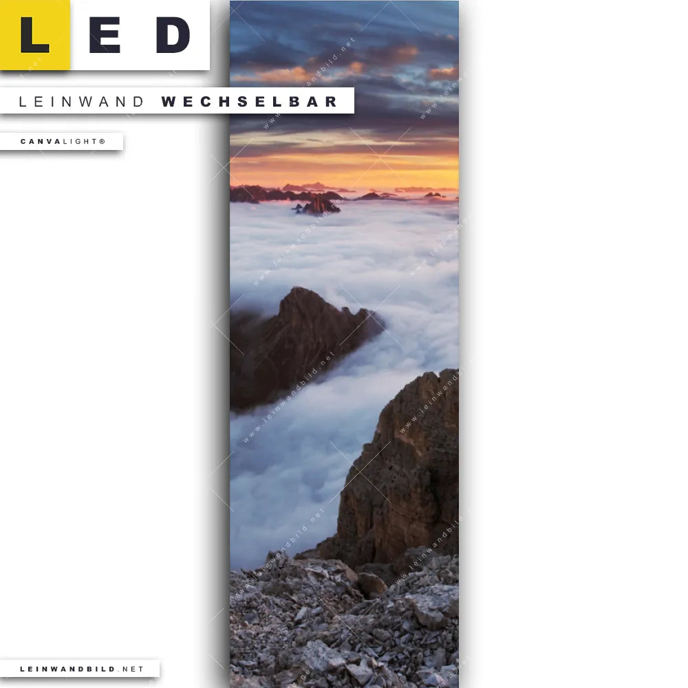 Du bist auf der Suche nach einem Landschaften LED Leinwandbild im Schmalen Format? Begriffe wie Landschaft, Natur, Stille, Berge, Sonnenuntergang, Sonnenaufgang, Sonne, Gebirge, Nebel, Steine haben Dich auf der Suche nach Deinem neuen XXL LED Wandbild mit wechselbarer Leinwand inspiriert? Farben wie Orange, Blau, Rot, Weiss, Braun, Bunt, Hellblau dürfen auf Deinem neuen Leinwand-LED-Bild im Panorama-Hochformat nicht fehlen und Leuchtbilder im Natürlich - Realistisch, Mixed Media Stil passen perfekt zu Deinem Einrichtungsstil?