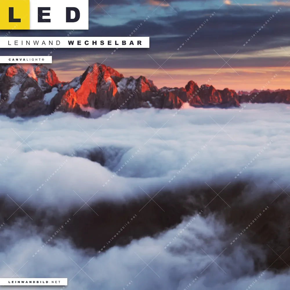 LED Leinwandbild Canvalight® TEX | Alpen im Nebel | Schmal
