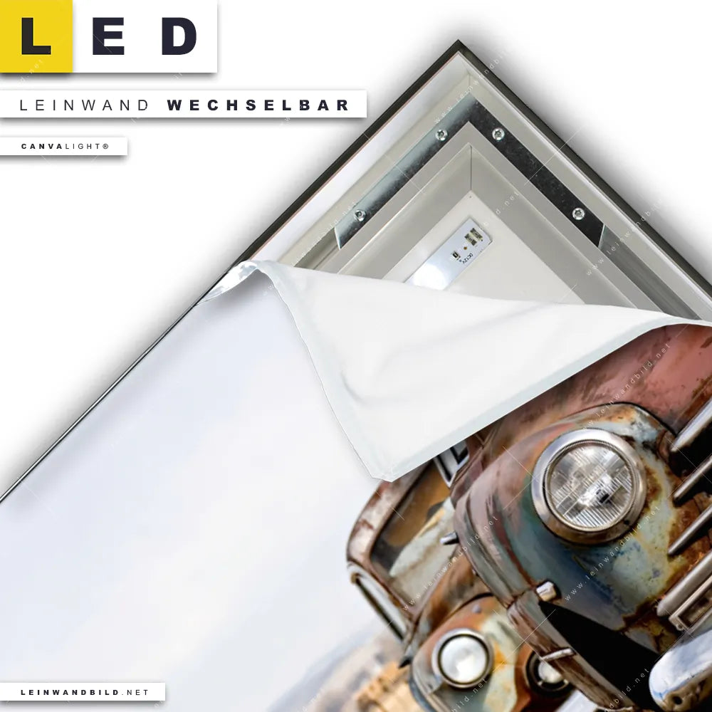 Du konfigurierst Dein individuelles LED Leinwandbild Canvalight® TEX | Alte rostige Autos | Querformat und wir produzieren es NEU für Dich. Unsere Fahrzeuge LED Bilder mit wechselbarer Textil-Leinwand sind KEINE Lagerware. Du bist Dir unsicher, welches Motiv oder Format das richtige für dein individuelles Canvalight® Leuchtbild ist, dann helfen wir dir gerne weiter und beraten dich!