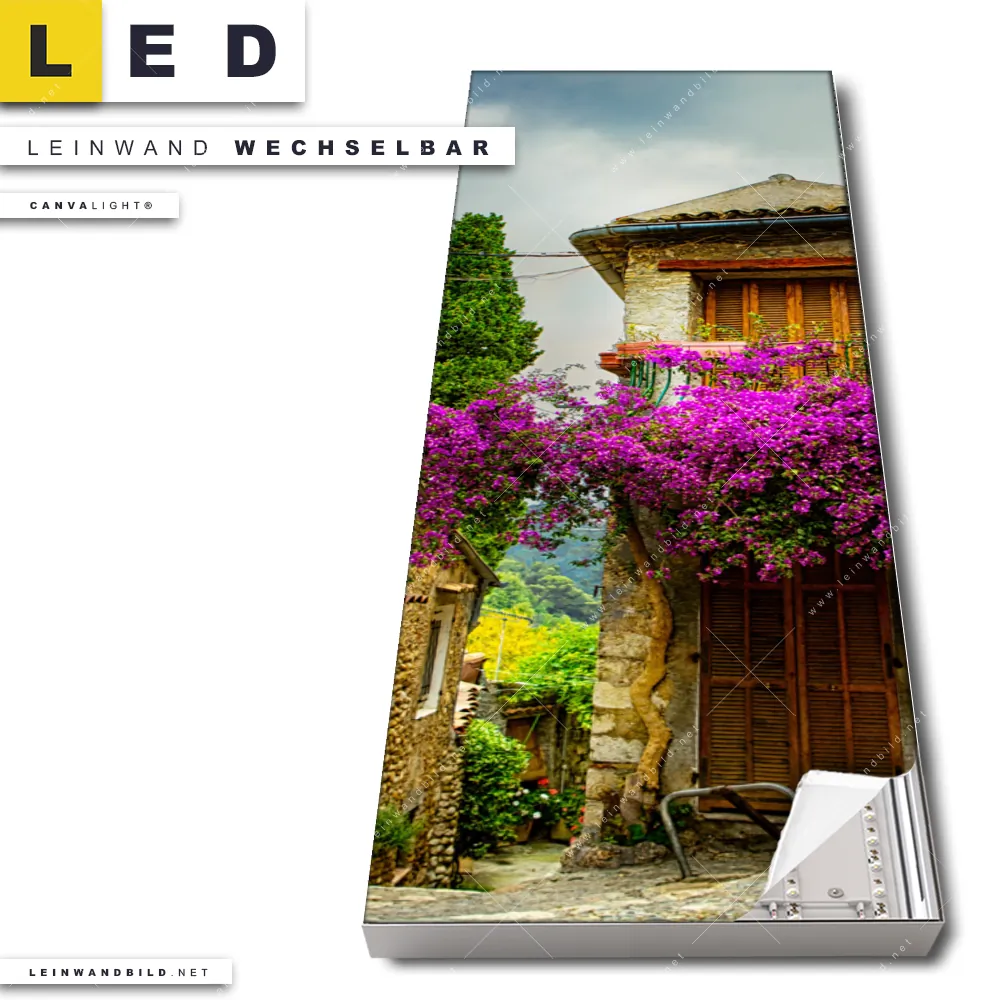 Du konfigurierst Dein individuelles LED Leinwandbild Canvalight® TEX | Altstadt der Provence | Schmal und wir produzieren es NEU für Dich. Unsere Architektur - Gebäude LED Bilder mit wechselbarer Textil-Leinwand sind KEINE Lagerware. Du bist Dir unsicher, welches Motiv oder Format das richtige für dein individuelles Canvalight® Leuchtbild ist, dann helfen wir dir gerne weiter und beraten dich!