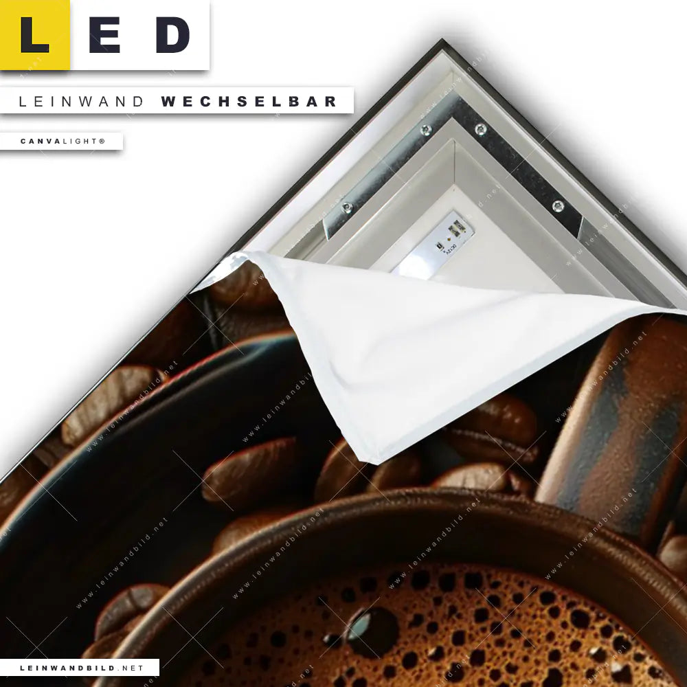Du konfigurierst Dein individuelles LED Leinwandbild Canvalight® TEX | Aromatischer Kaffeetraum | Panorama und wir produzieren es NEU für Dich. Unsere Essen - Trinken LED Bilder mit wechselbarer Textil-Leinwand sind KEINE Lagerware. Du bist Dir unsicher, welches Motiv oder Format das richtige für dein individuelles Canvalight® Leuchtbild ist, dann helfen wir dir gerne weiter und beraten dich!