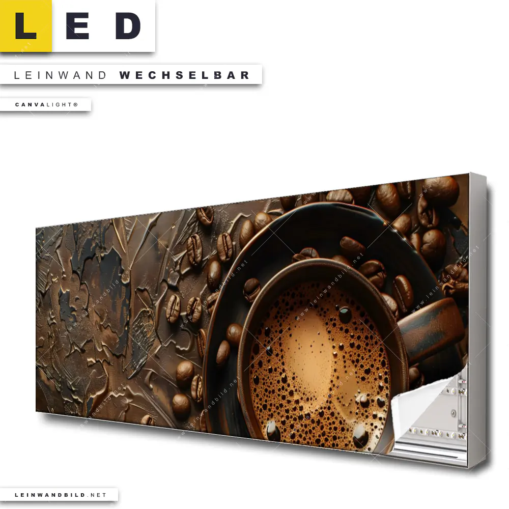 LED Leinwandbild Canvalight® TEX | Aromatischer Kaffeetraum | Panorama