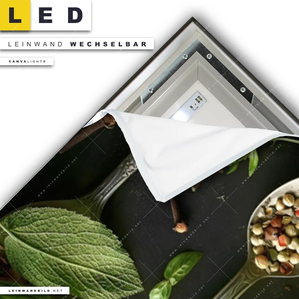 Du konfigurierst Dein individuelles LED Leinwandbild Canvalight® TEX | Aromen der Natur | Schmal und wir produzieren es NEU für Dich. Unsere Essen - Trinken LED Bilder mit wechselbarer Textil-Leinwand sind KEINE Lagerware. Du bist Dir unsicher, welches Motiv oder Format das richtige für dein individuelles Canvalight® Leuchtbild ist, dann helfen wir dir gerne weiter und beraten dich!