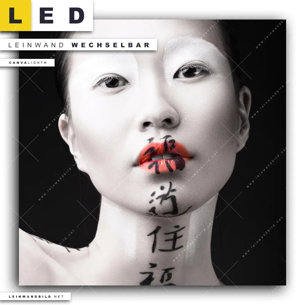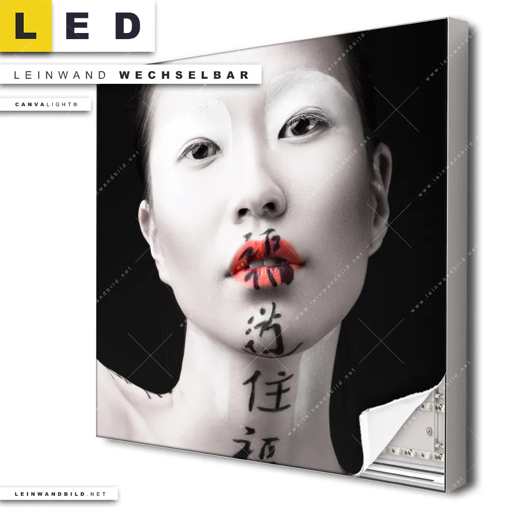 Du konfigurierst Dein individuelles LED Leinwandbild Canvalight® TEX | Asiatische Schönheit | Quadrat und wir produzieren es NEU für Dich. Unsere Porträts - Menschen LED Bilder mit wechselbarer Textil-Leinwand sind KEINE Lagerware. Du bist Dir unsicher, welches Motiv oder Format das richtige für dein individuelles Canvalight® Leuchtbild ist, dann helfen wir dir gerne weiter und beraten dich!