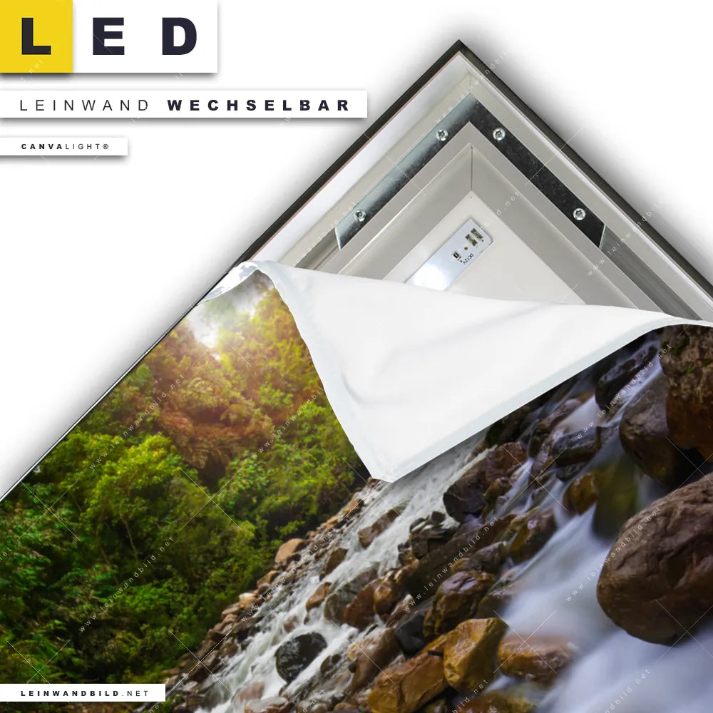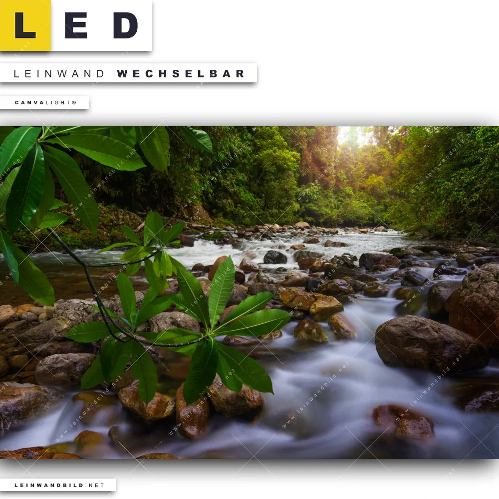 Du bist auf der Suche nach einem Landschaften, Wald - Bäume LED Leinwandbild im Querformat? Begriffe wie Dschungel, Fluss, Bach, Steine, Natur, Wald haben Dich auf der Suche nach Deinem neuen XXL LED Wandbild mit wechselbarer Leinwand inspiriert? Farben wie Grün, Braun dürfen auf Deinem neuen breiten Leinwand-LED-Bild nicht fehlen und Leuchtbilder im Natürlich - Realistisch Stil passen perfekt zu Deinem Einrichtungsstil?