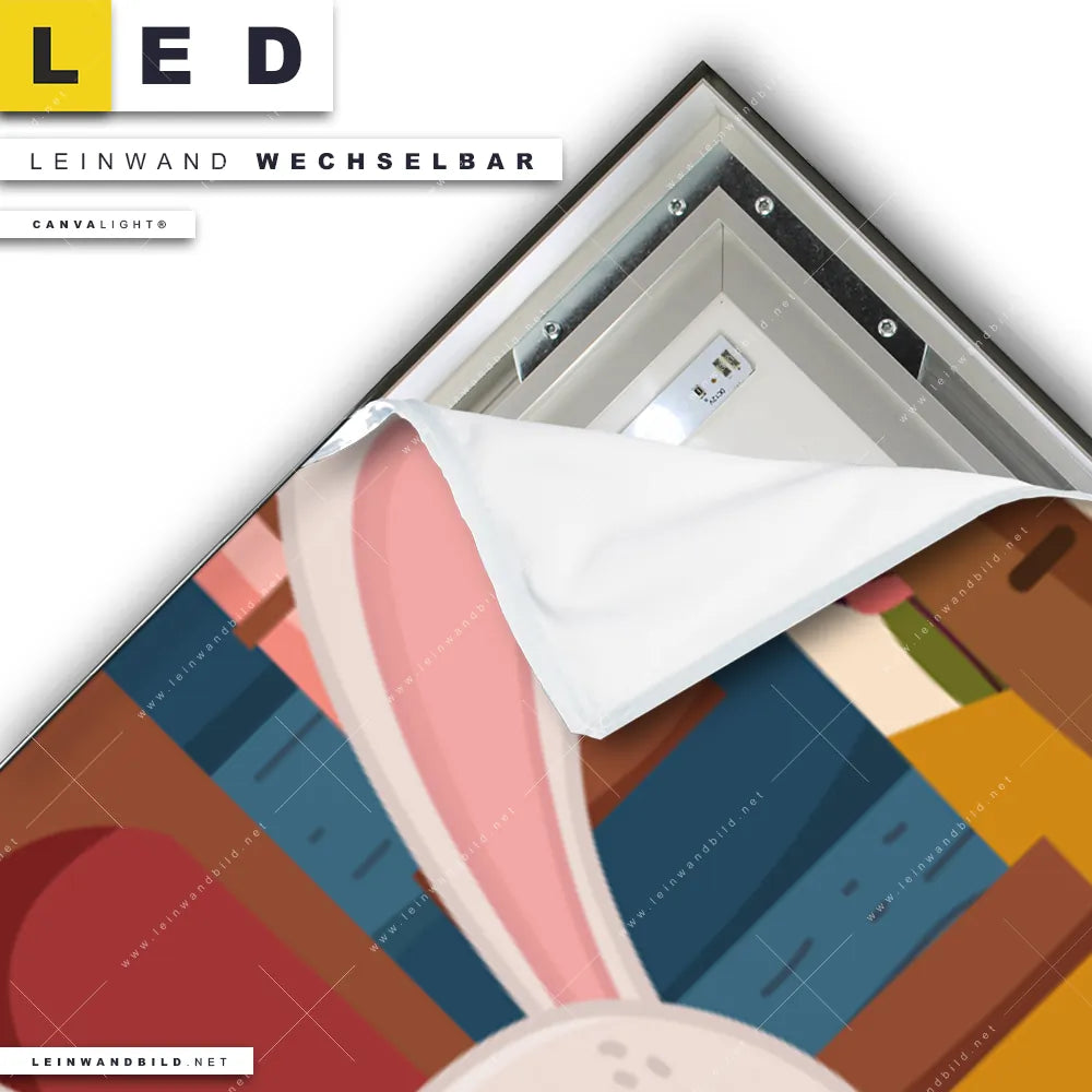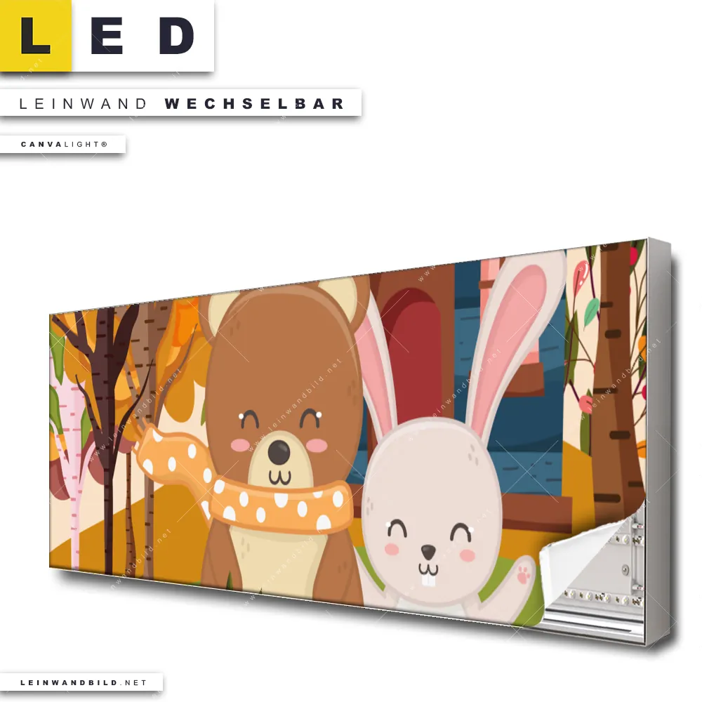 LED Leinwandbild Canvalight® TEX | Bär & Häschen | Panorama