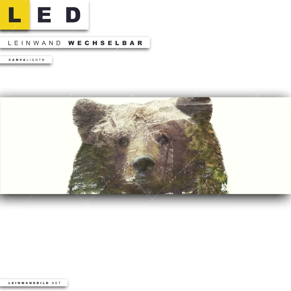 Du bist auf der Suche nach einem Tierwelt LED Leinwandbild im Panorama-Format? Begriffe wie Bär, Wald, Doppelbelichtung, Natur, skandinavisch, Bäume haben Dich auf der Suche nach Deinem neuen XXL LED Wandbild mit wechselbarer Leinwand inspiriert? Farben wie Beige, Braun, Weiss dürfen auf Deinem neuen extra breiten Leinwand-LED-Bild nicht fehlen und Leuchtbilder im Mixed Media, Modern Art Stil passen perfekt zu Deinem Einrichtungsstil?