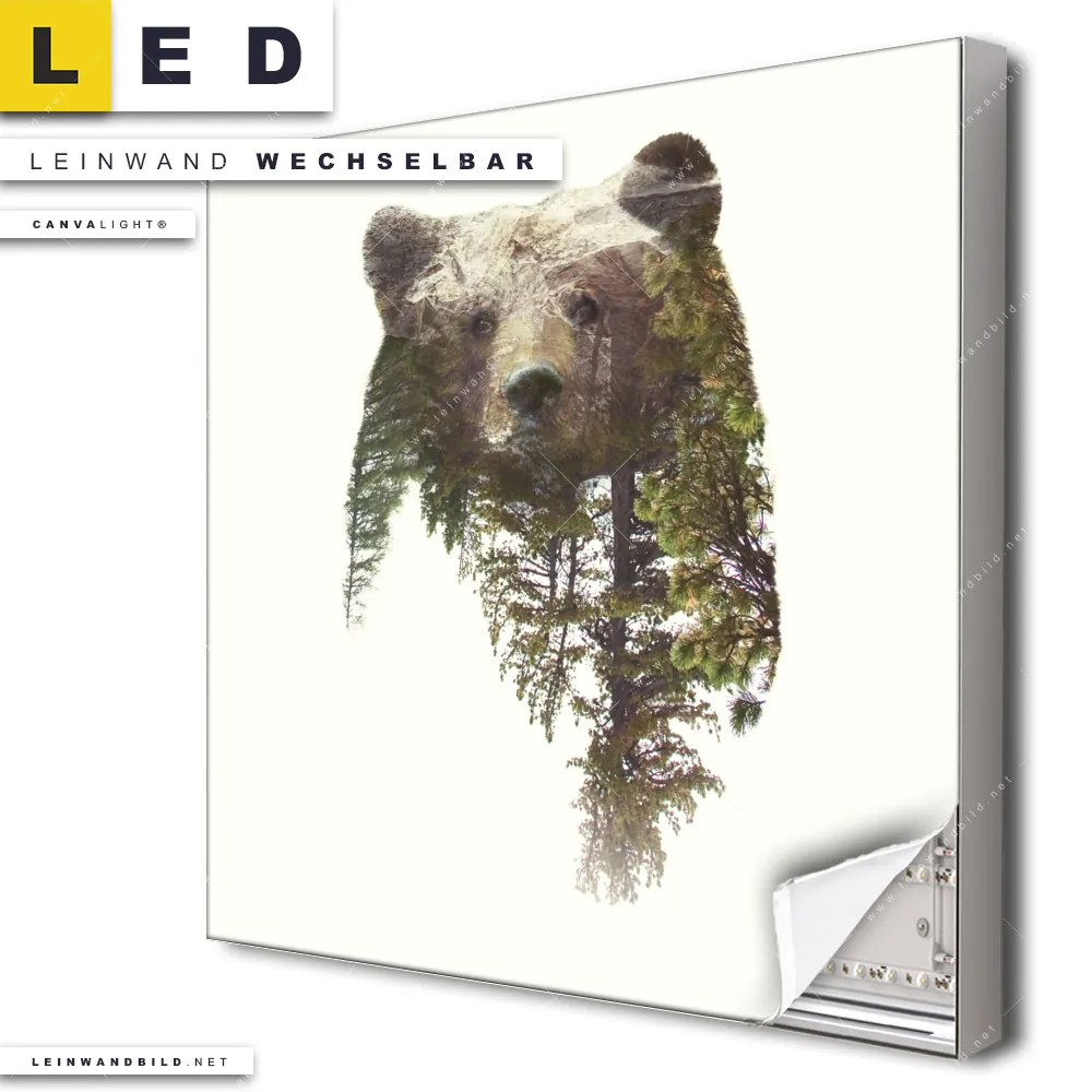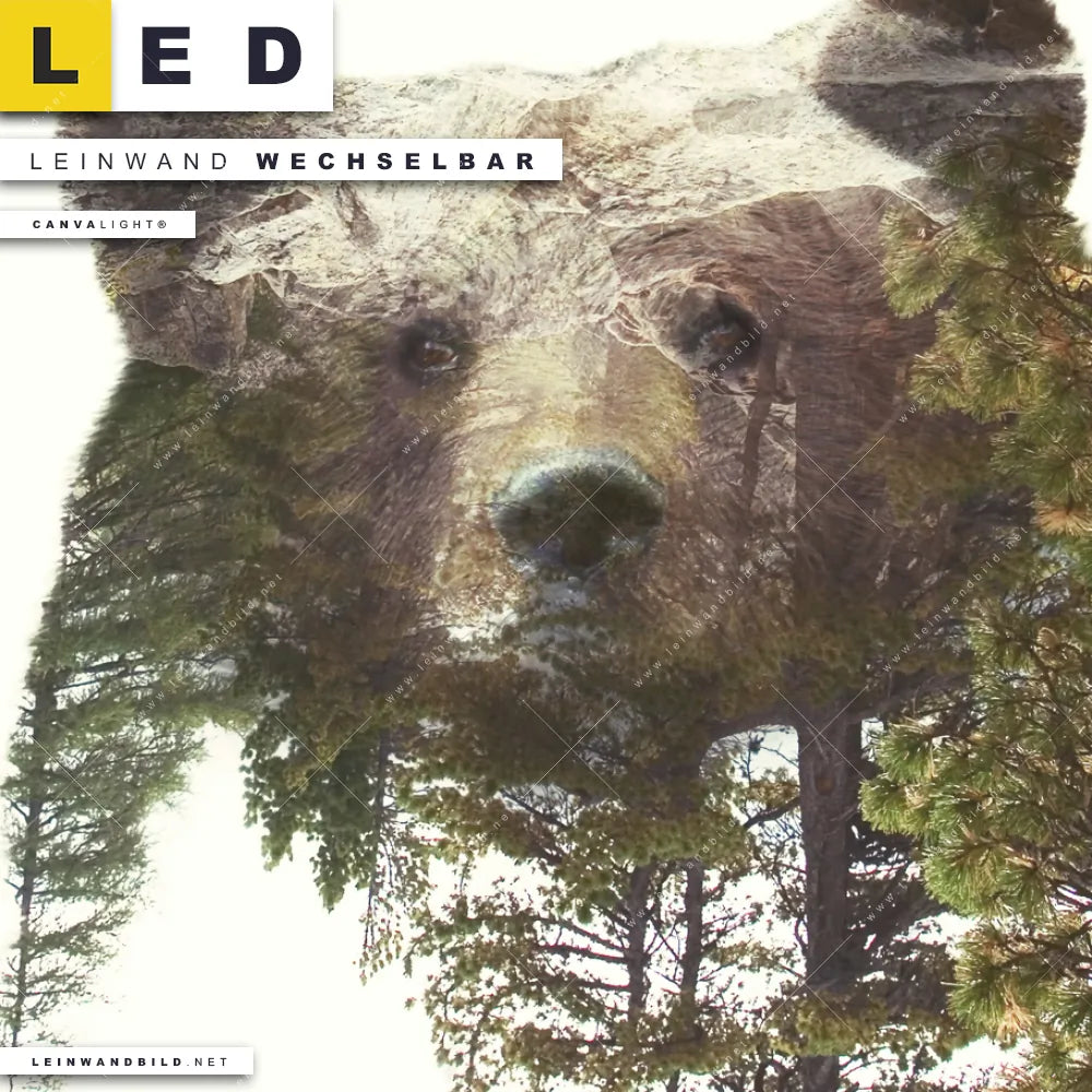 Du bist auf der Suche nach einem Tierwelt LED Leinwandbild im Quadratischen Format? Begriffe wie Bär, Wald, Doppelbelichtung, Natur, skandinavisch, Bäume haben Dich auf der Suche nach Deinem neuen XXL LED Wandbild mit wechselbarer Leinwand inspiriert? Farben wie Beige, Braun, Weiss dürfen auf Deinem neuen Leinwand-LED-Bild nicht fehlen und Leuchtbilder im Mixed Media, Modern Art Stil passen perfekt zu Deinem Einrichtungsstil?