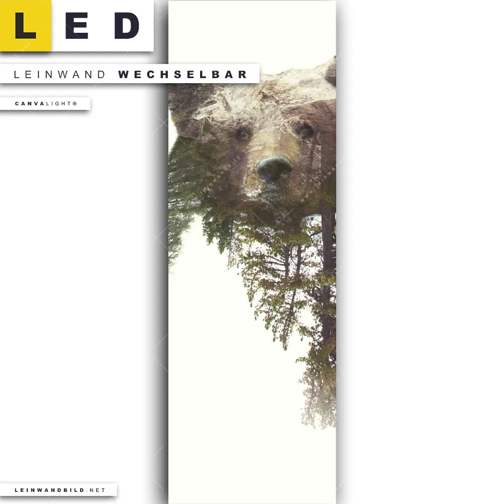 Du bist auf der Suche nach einem Tierwelt LED Leinwandbild im Schmalen Format? Begriffe wie Bär, Wald, Doppelbelichtung, Natur, skandinavisch, Bäume haben Dich auf der Suche nach Deinem neuen XXL LED Wandbild mit wechselbarer Leinwand inspiriert? Farben wie Beige, Braun, Weiss dürfen auf Deinem neuen Leinwand-LED-Bild im Panorama-Hochformat nicht fehlen und Leuchtbilder im Mixed Media, Modern Art Stil passen perfekt zu Deinem Einrichtungsstil?