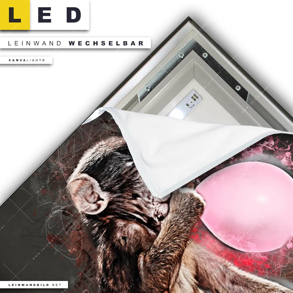 Du konfigurierst Dein individuelles LED Leinwandbild Canvalight® TEX | Ballon Äffchen | Quadrat und wir produzieren es NEU für Dich. Unsere Tierwelt LED Bilder mit wechselbarer Textil-Leinwand sind KEINE Lagerware. Du bist Dir unsicher, welches Motiv oder Format das richtige für dein individuelles Canvalight® Leuchtbild ist, dann helfen wir dir gerne weiter und beraten dich!