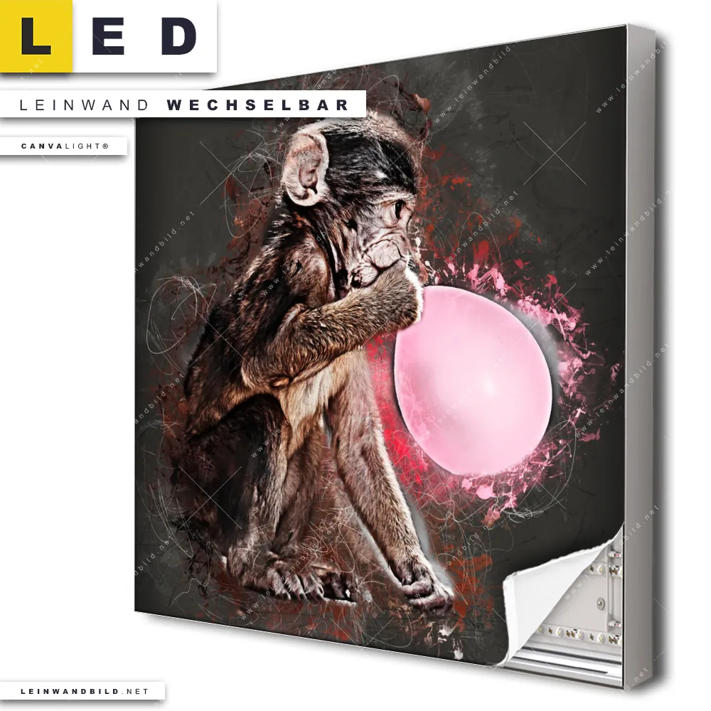 Du bist auf der Suche nach einem Tierwelt LED Leinwandbild im Quadratischen Format? Begriffe wie Tier, Affe, Monkey, Kaugummi, Bubble Gum, lustig, Kunst, Ballon, Luftballon haben Dich auf der Suche nach Deinem neuen XXL LED Wandbild mit wechselbarer Leinwand inspiriert? Farben wie Pink, Rosa, Schwarz dürfen auf Deinem neuen Leinwand-LED-Bild nicht fehlen und Leuchtbilder im Abstrakt, Modern Art, Grunge Stil passen perfekt zu Deinem Einrichtungsstil?