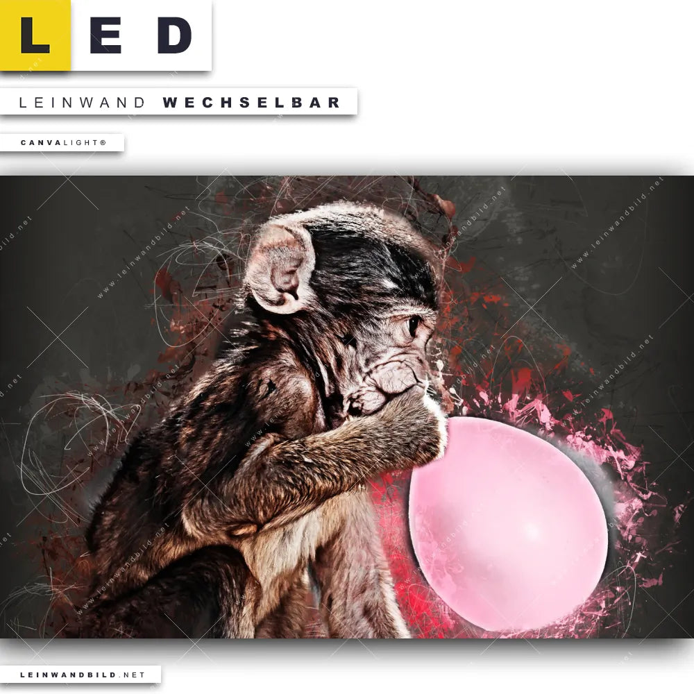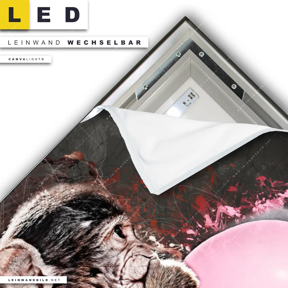 Du bist auf der Suche nach einem Tierwelt LED Leinwandbild im Querformat? Begriffe wie Tier, Affe, Monkey, Kaugummi, Bubble Gum, lustig, Kunst, Ballon, Luftballon haben Dich auf der Suche nach Deinem neuen XXL LED Wandbild mit wechselbarer Leinwand inspiriert? Farben wie Pink, Rosa, Schwarz dürfen auf Deinem neuen breiten Leinwand-LED-Bild nicht fehlen und Leuchtbilder im Abstrakt, Modern Art, Grunge Stil passen perfekt zu Deinem Einrichtungsstil?
