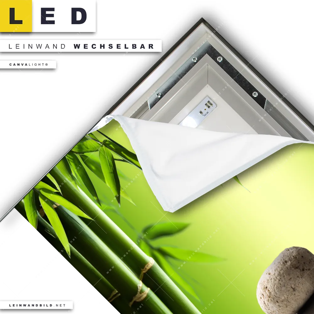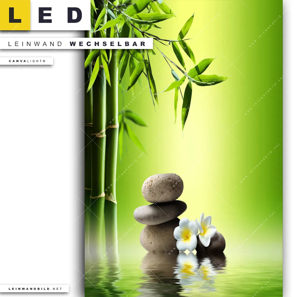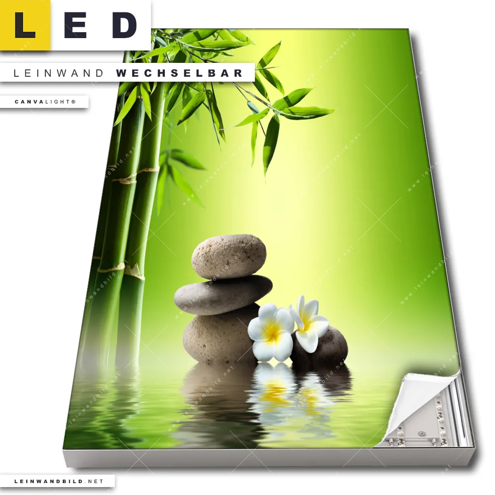 LED Leinwandbild Canvalight® TEX | Bambus & Steine | Hochformat