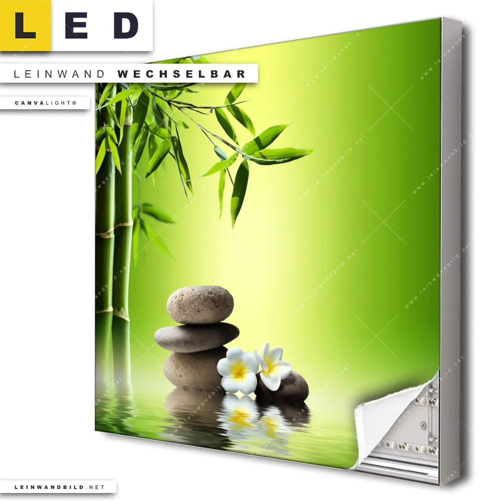 Du konfigurierst Dein individuelles LED Leinwandbild Canvalight® TEX | Bambus & Steine | Quadrat und wir produzieren es NEU für Dich. Unsere Buddha - Feng Shui, Blumen - Botanik LED Bilder mit wechselbarer Textil-Leinwand sind KEINE Lagerware. Du bist Dir unsicher, welches Motiv oder Format das richtige für dein individuelles Canvalight® Leuchtbild ist, dann helfen wir dir gerne weiter und beraten dich!