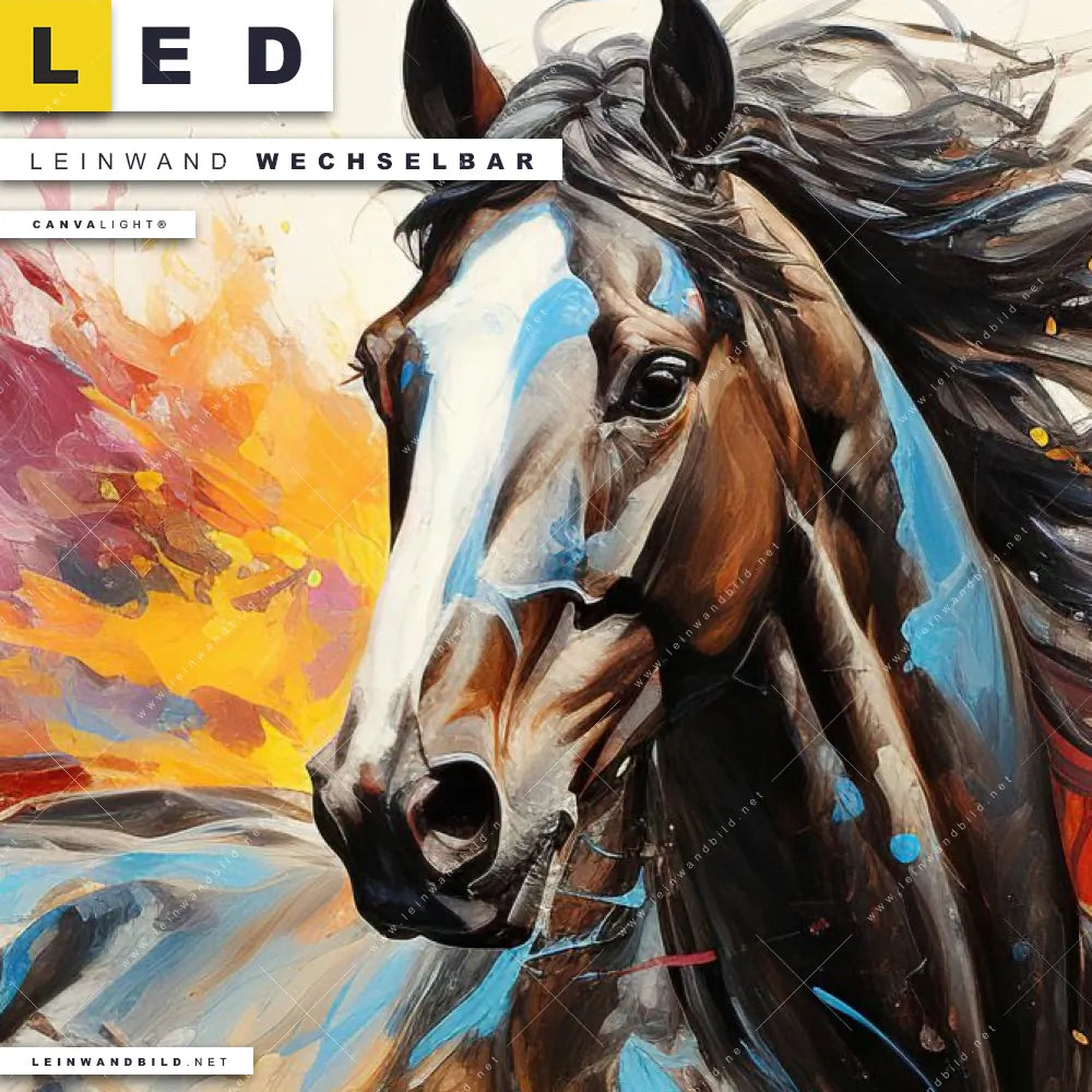 Du bist auf der Suche nach einem Tierwelt LED Leinwandbild im Schmalen Format? Begriffe wie Hengst, Andalusier, Stute, Pony, Farbnebel haben Dich auf der Suche nach Deinem neuen XXL LED Wandbild mit wechselbarer Leinwand inspiriert? Farben wie Bunt, Braun, Beige dürfen auf Deinem neuen Leinwand-LED-Bild im Panorama-Hochformat nicht fehlen und Leuchtbilder im Modern Art, Pop Art Stil passen perfekt zu Deinem Einrichtungsstil?