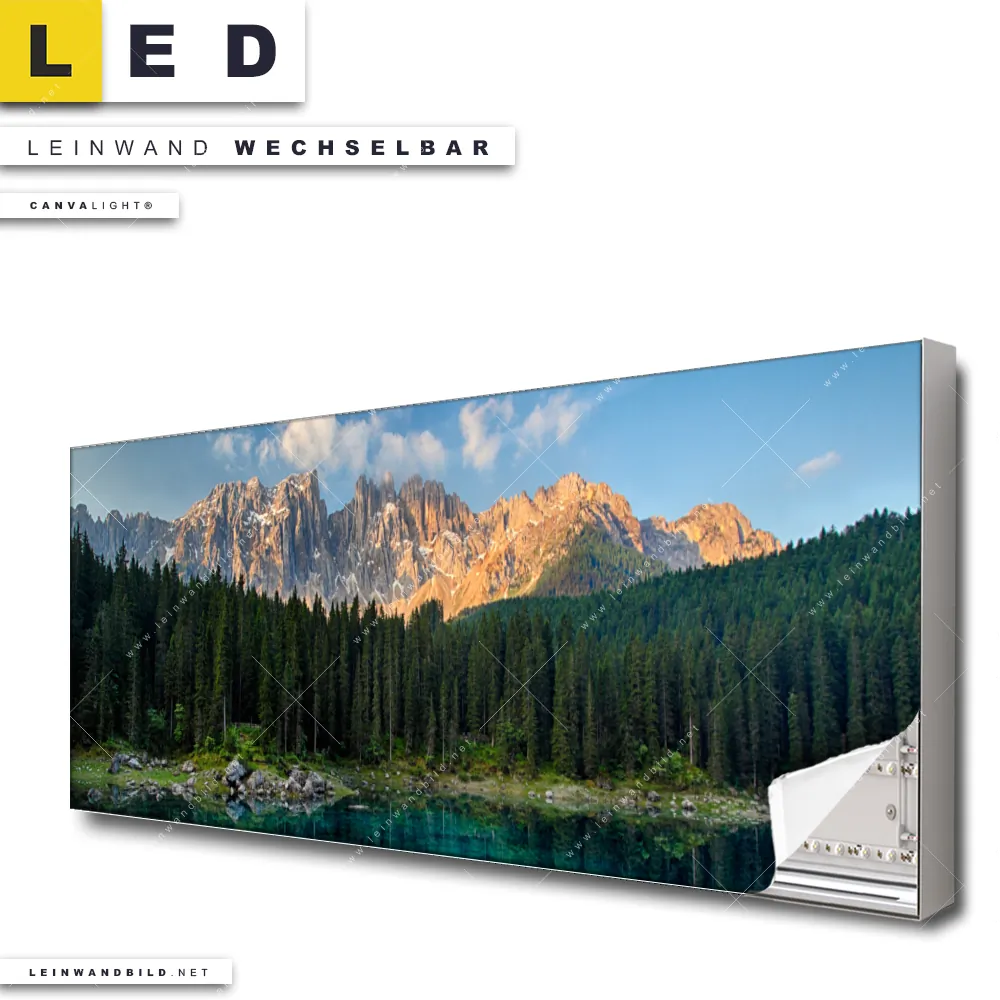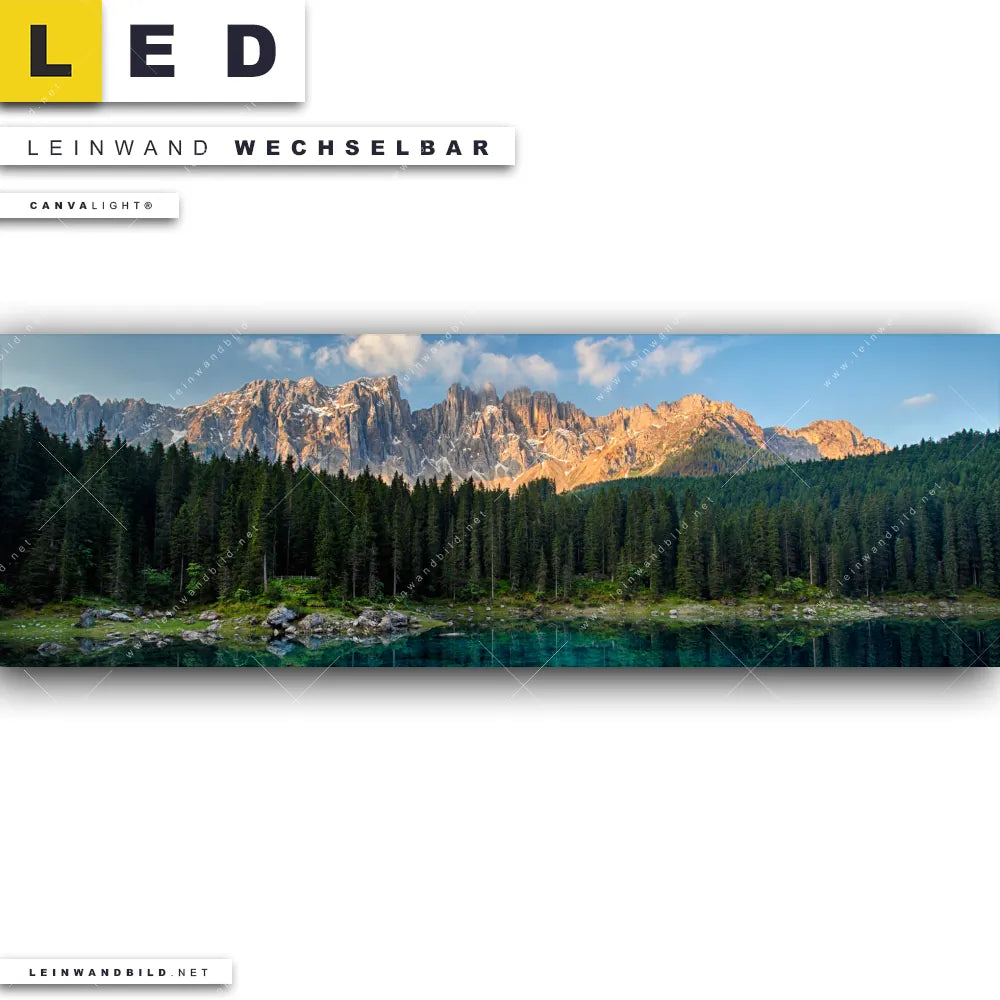 LED Leinwandbild Canvalight® TEX | Bergsee im Wald | Panorama