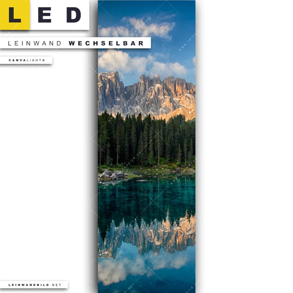 LED Leinwandbild Canvalight® TEX | Bergsee im Wald | Schmal