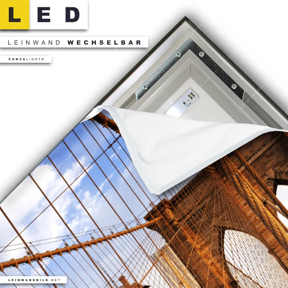 Du konfigurierst Dein individuelles LED Leinwandbild Canvalight® TEX | Berühmte Brooklyn Bridge | Hochformat und wir produzieren es NEU für Dich. Unsere Architektur - Gebäude, Städte - Skylines LED Bilder mit wechselbarer Textil-Leinwand sind KEINE Lagerware. Du bist Dir unsicher, welches Motiv oder Format das richtige für dein individuelles Canvalight® Leuchtbild ist, dann helfen wir dir gerne weiter und beraten dich!