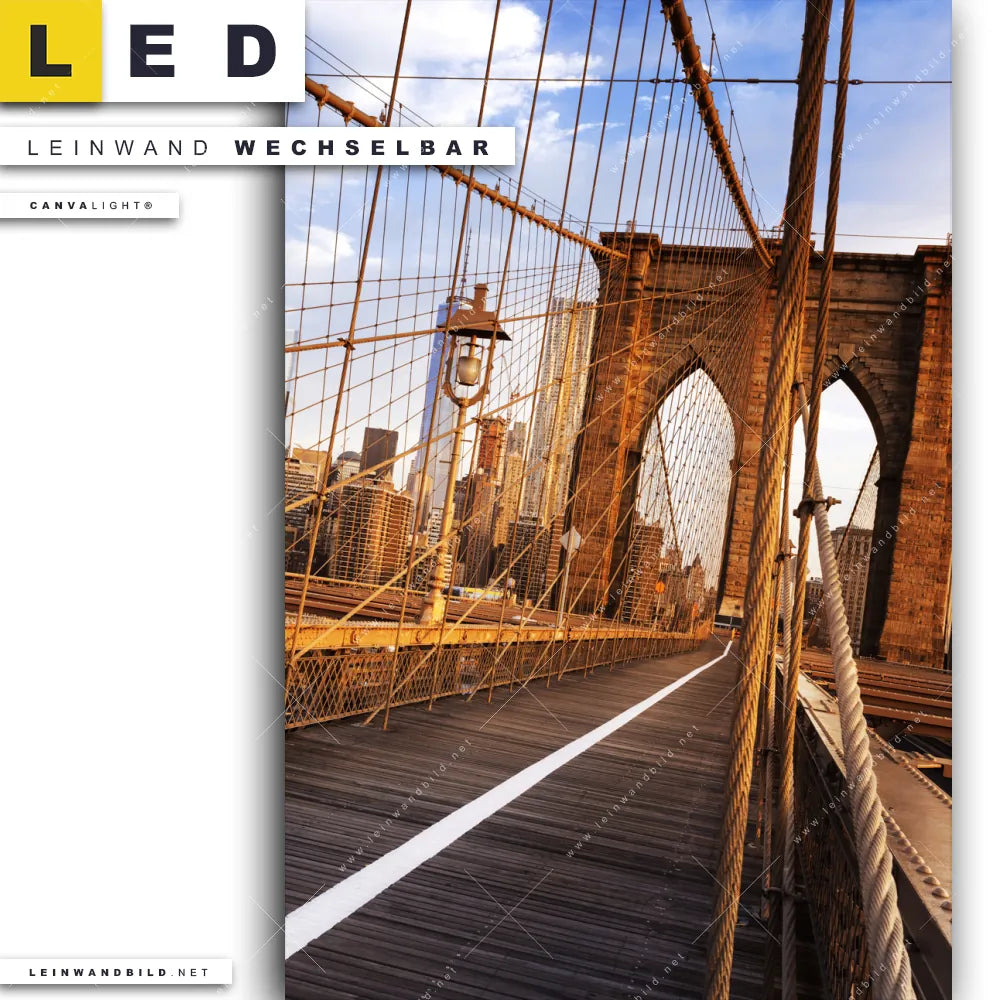 LED Leinwandbild Canvalight® TEX | Berühmte Brooklyn Bridge | Hochformat