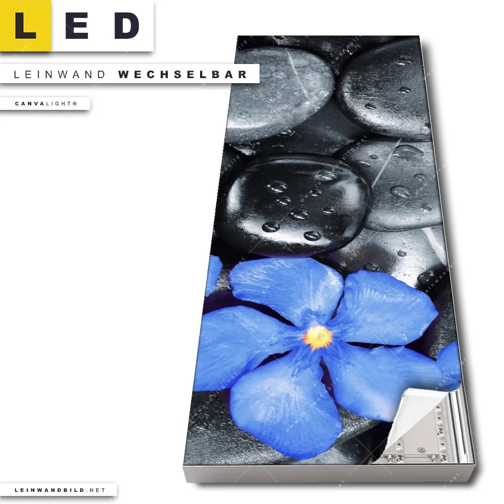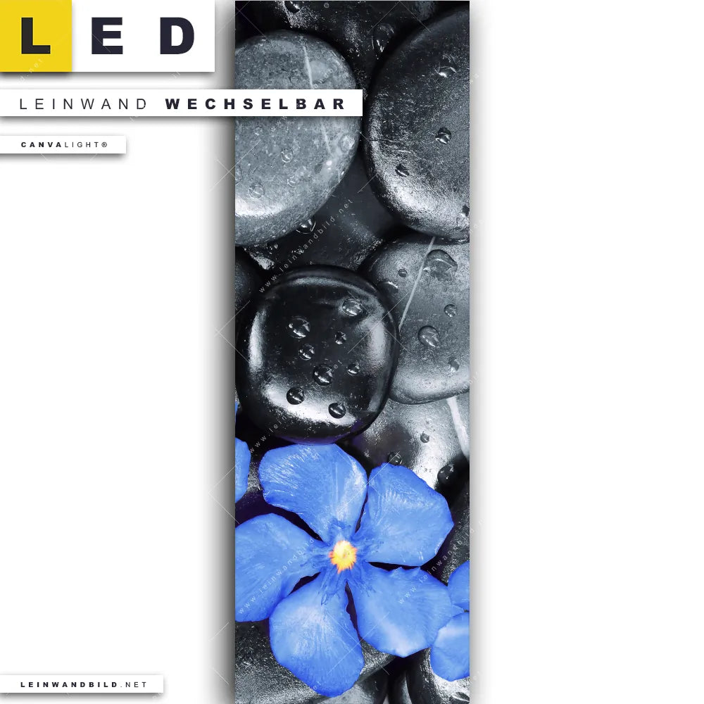 LED Leinwandbild Canvalight® TEX | Blaue Blume & Graue Steine | Schmal