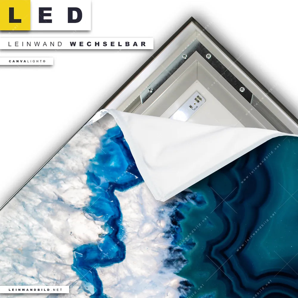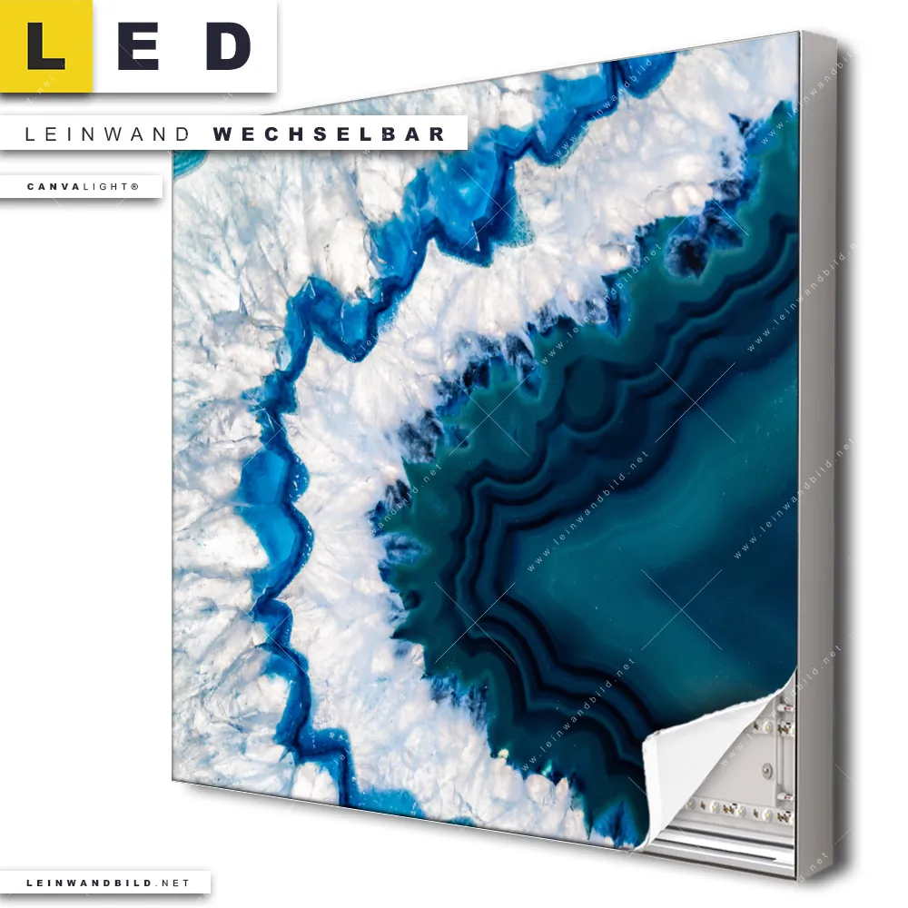 Du konfigurierst Dein individuelles LED Leinwandbild Canvalight® TEX | Blauer Achat | Quadrat und wir produzieren es NEU für Dich. Unsere Muster - Texturen LED Bilder mit wechselbarer Textil-Leinwand sind KEINE Lagerware. Du bist Dir unsicher, welches Motiv oder Format das richtige für dein individuelles Canvalight® Leuchtbild ist, dann helfen wir dir gerne weiter und beraten dich!