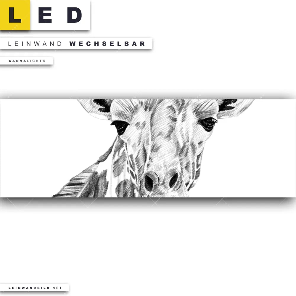 LED Leinwandbild Canvalight® TEX | Bleistiftzeichnung Giraffe | Panorama