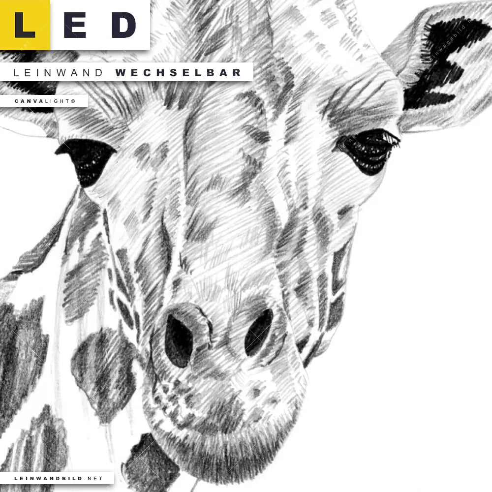 Du konfigurierst Dein individuelles LED Leinwandbild Canvalight® TEX | Bleistiftzeichnung Giraffe | Panorama und wir produzieren es NEU für Dich. Unsere Tierwelt LED Bilder mit wechselbarer Textil-Leinwand sind KEINE Lagerware. Du bist Dir unsicher, welches Motiv oder Format das richtige für dein individuelles Canvalight® Leuchtbild ist, dann helfen wir dir gerne weiter und beraten dich!