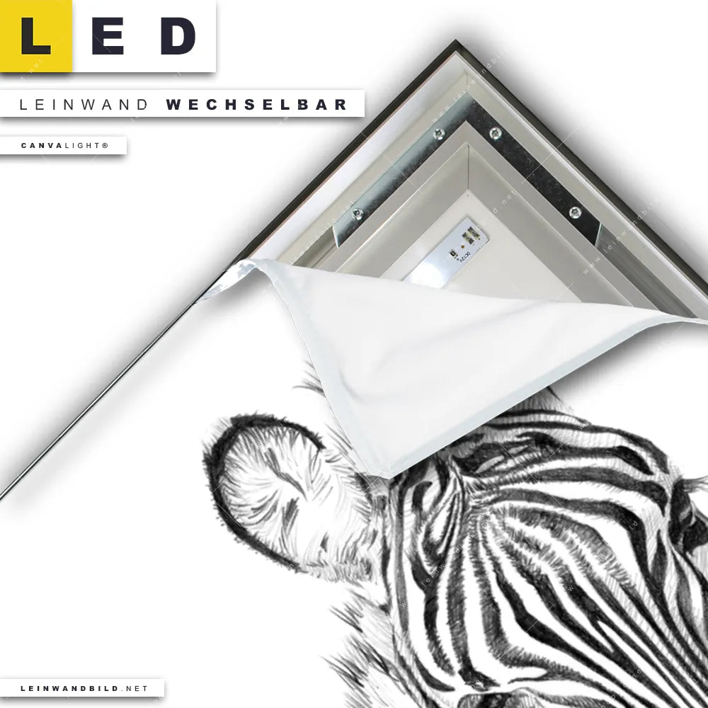 Du konfigurierst Dein individuelles LED Leinwandbild Canvalight® TEX | Bleistiftzeichnung Zebra | Hochformat und wir produzieren es NEU für Dich. Unsere Tierwelt LED Bilder mit wechselbarer Textil-Leinwand sind KEINE Lagerware. Du bist Dir unsicher, welches Motiv oder Format das richtige für dein individuelles Canvalight® Leuchtbild ist, dann helfen wir dir gerne weiter und beraten dich!